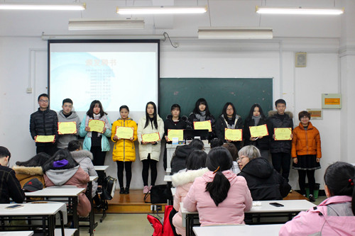随后,由辅导员向华老师总结了本学期的文明宿舍创建工作,并为10位寝室长颁发了聘书。