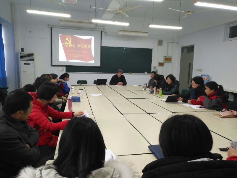首先,吴亚人副书记结合学习、讨论主题——“不忘初心、牢记使命”,用十九大报告的“新时代、强起来、主要矛盾、四个伟大、全面小康、新征程、习近平新时代中国特色社会主义思想、土地承包、全面依法治国领导小组、青春梦想”等十个关键词,与全体老师一起解读了十九大报告中所表达的重要思想,要求每位老师结合自身工作,回忆初心,寻找前行目标,提出努力方向。