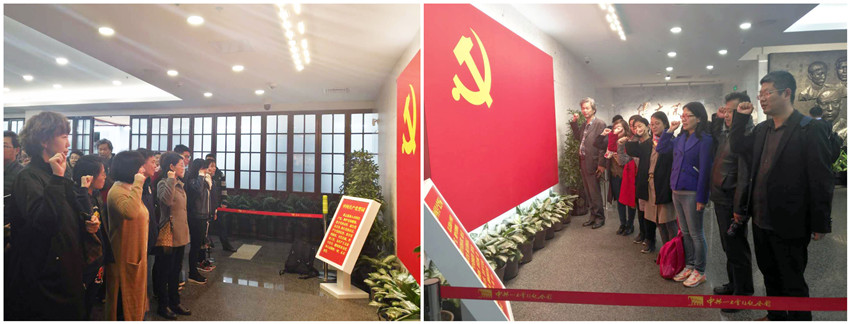 下午13:30,参会的党员和入党积极分子一同在一楼大厅集体重温入党誓词,随后参观了一大文物史料的陈列以及“周恩来在上海”图片文物展。通过参观和学习,老师们和同学们再次感受到了党赋予的使命与责任,不忘初心,在自己的岗位上树起一面旗,起到模范先锋带头作用,用实际行动擦亮党员身份。