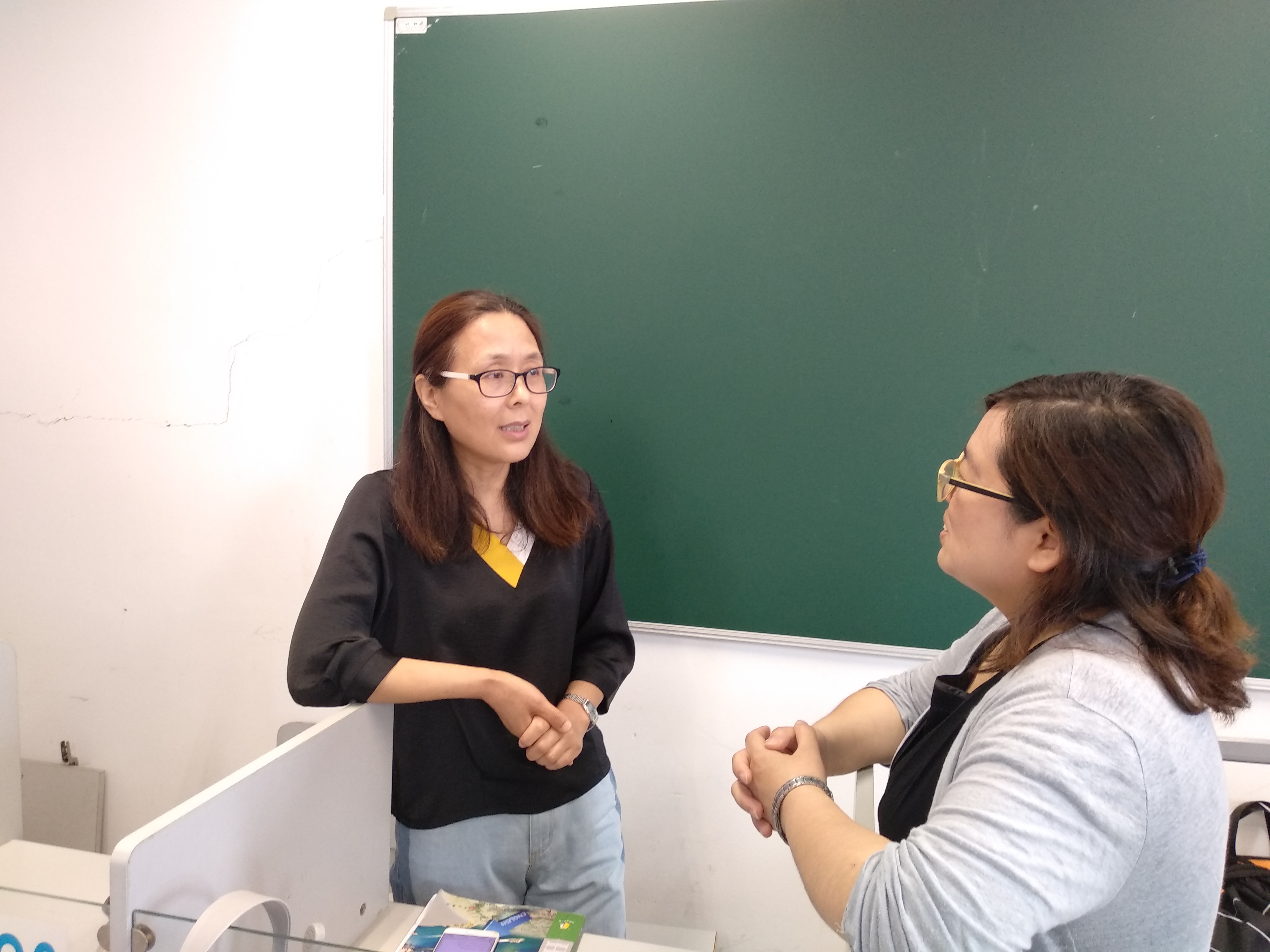 本次教学展示周特邀了上海城建职业学院的基础教学部副主任黄媛媛副教授和英语教研室主任尹扬帆副教授进行听课,评课和议课。5月18日两位教师对英语教师进行了随机听课。下午,专家组和外语学院课堂风教学采展示工作组在B205进行了热烈交流和讨论。肖潇副院长首先对来访专家表示热烈欢迎,感谢来访教师对外语学院工作的支持,强调外语教学教风、学风、师德师风建设的重要性。吴亚人副书记讲话中提到外语课堂要提升现代教育理念,运用信息化教学手段,采用多样形式进行教学并形成教学方法的交流和共享,鼓励定期开展校校交流活动。专家对被听课教师的专业素养和基本功进行了充分肯定,对《职场英语》、《高本贯通英语》和《实用英语》的授课教师教风﹑发音﹑课堂设计﹑师生互动﹑课堂活动形式进行了特色点评,分模块对听力课,词汇和课文讲解课给出了加大难度﹑增加新意和深度的意见和建议;专家提及了信息化教学手段的应用,同时还提供了城建学院中加合作课程的成功范例。