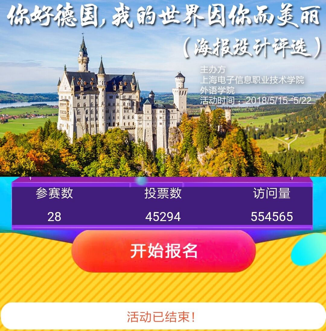 学生的实践应用能力、实践交流平台建设能力、和专业拓展能力是未来职业发展的重要内容。为展示学生海报作品和锻炼学生动手实践能力,外语学院于5月15日- 5月22日成功举办了“你好德国,我的世界因你而美丽”的海报设计评选线上线下活动。