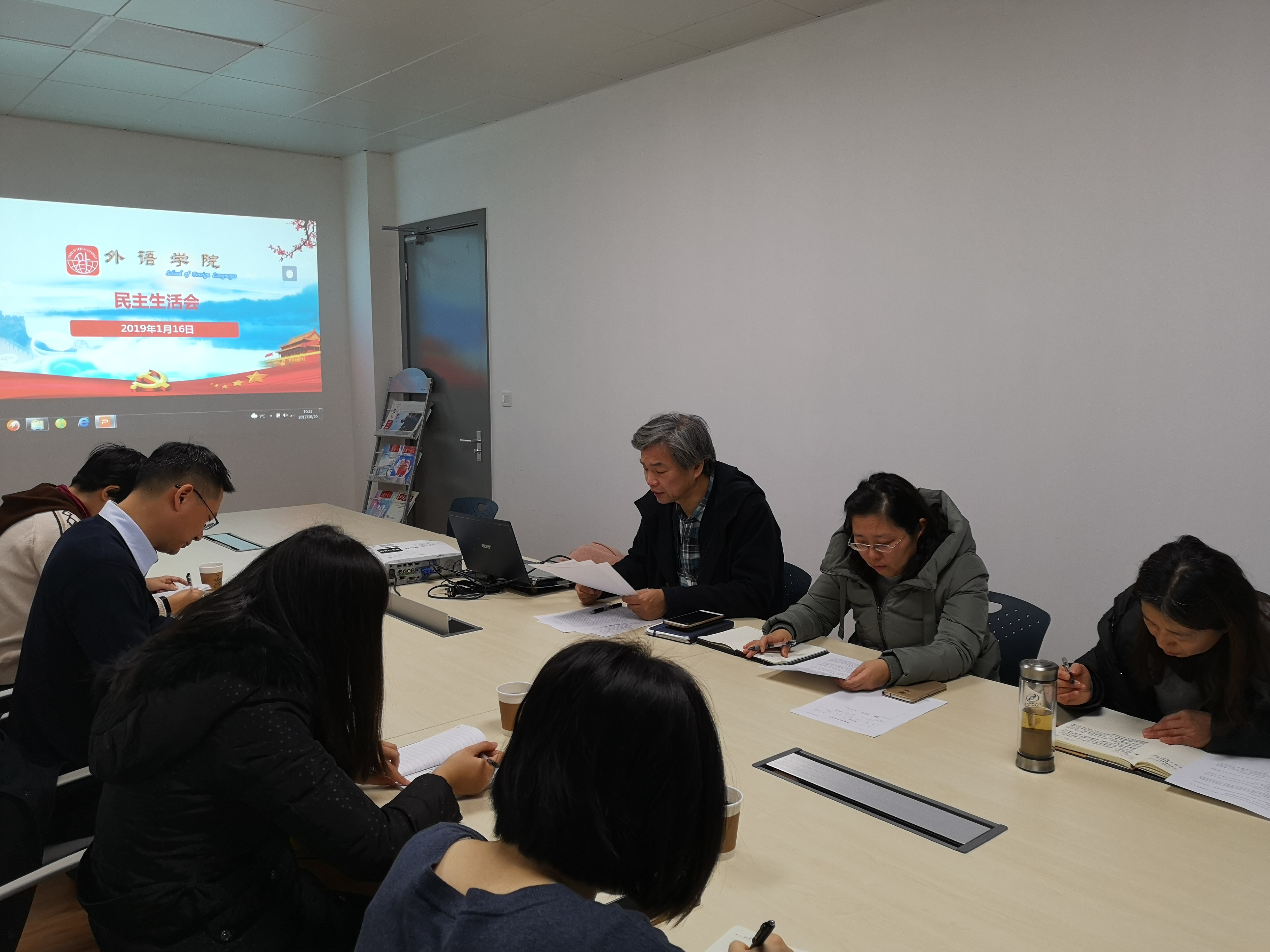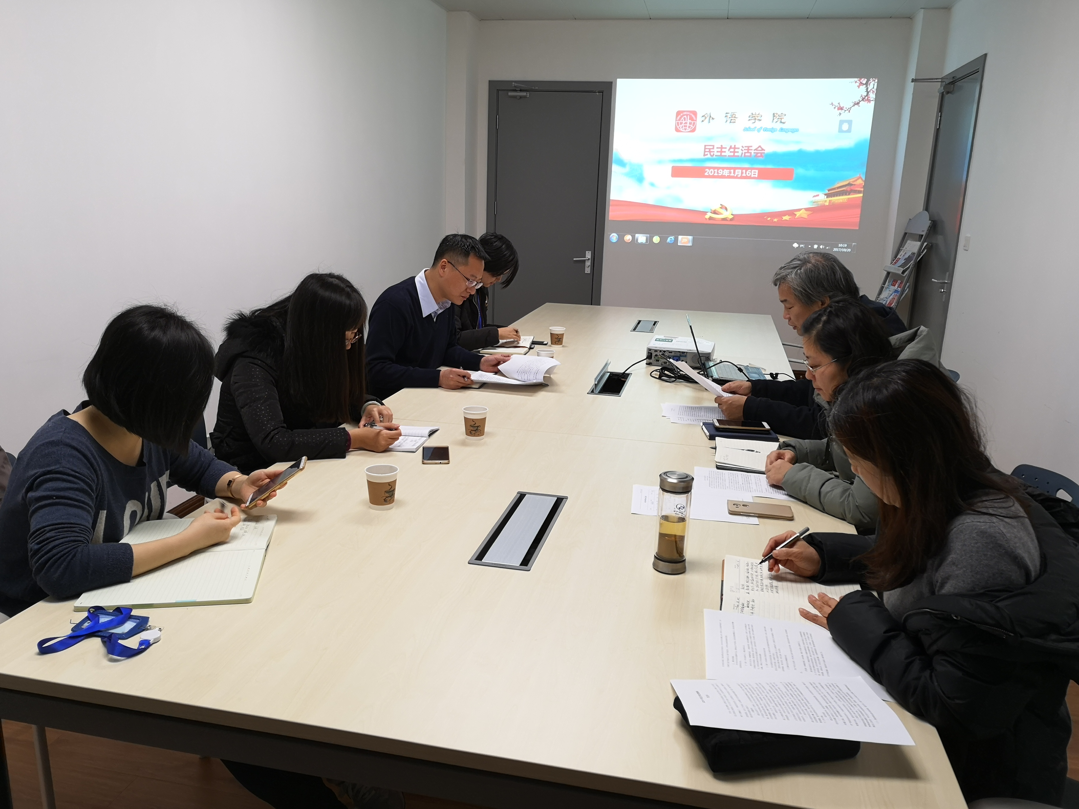 1月16日,外语学院在A105召开主题为“强化创新理论武装,树牢‘四个意识’,坚定‘四个自信’”外语学院2018年度党员领导干部民主生活会,学校张涛副书记、组织部沈莉副部长、宣传部张双双副部长、张姝老师以及外语学院党总支副书记吴亚人、副院长肖潇、副院长邓玉华、党总支办公室主任向华参加了会议。
