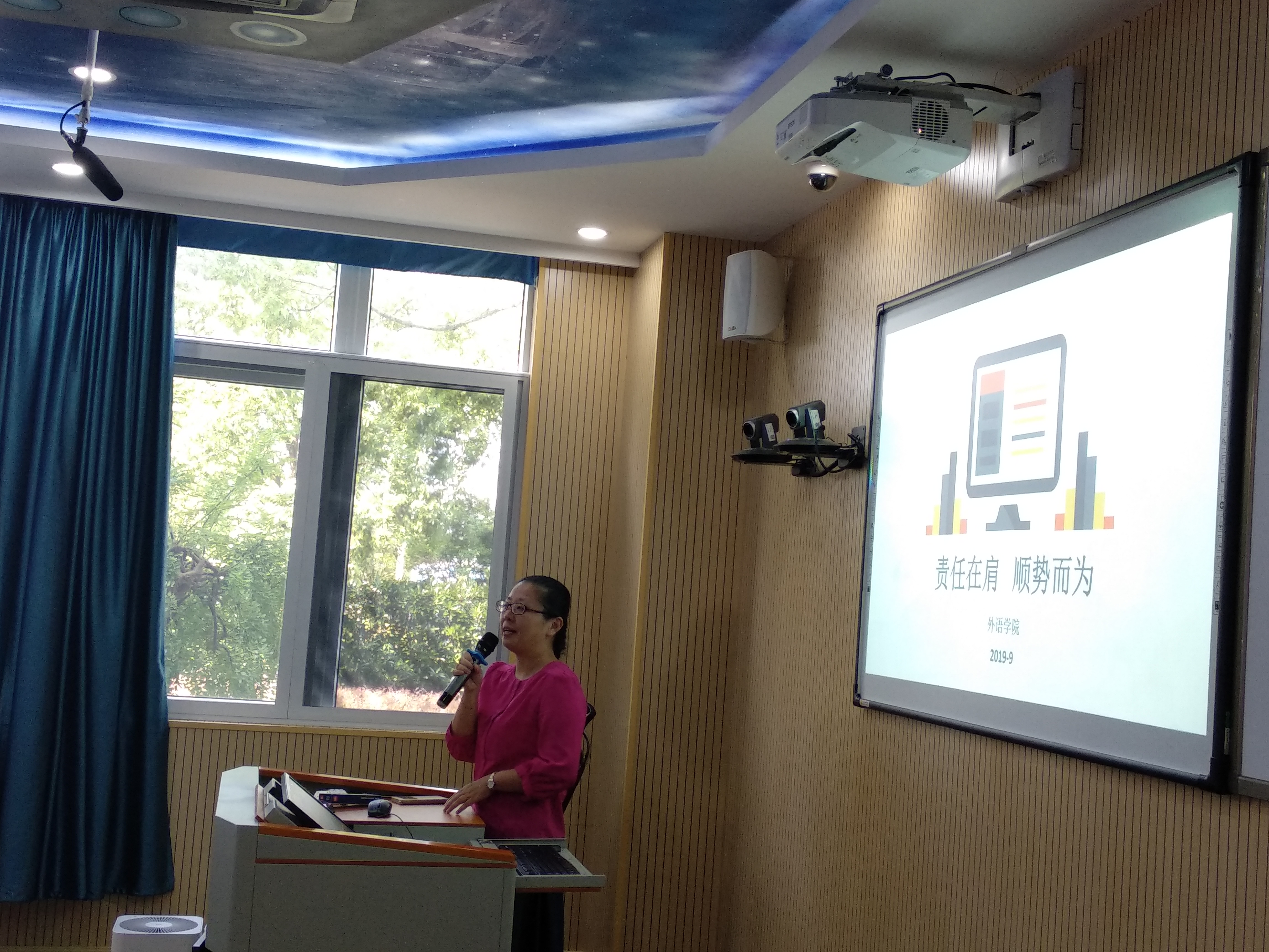 9月10日上午,外语学院于中德楼A110召开新学期第一次全体教职工大会,部署新学期重点工作。会议由院长肖潇主持。