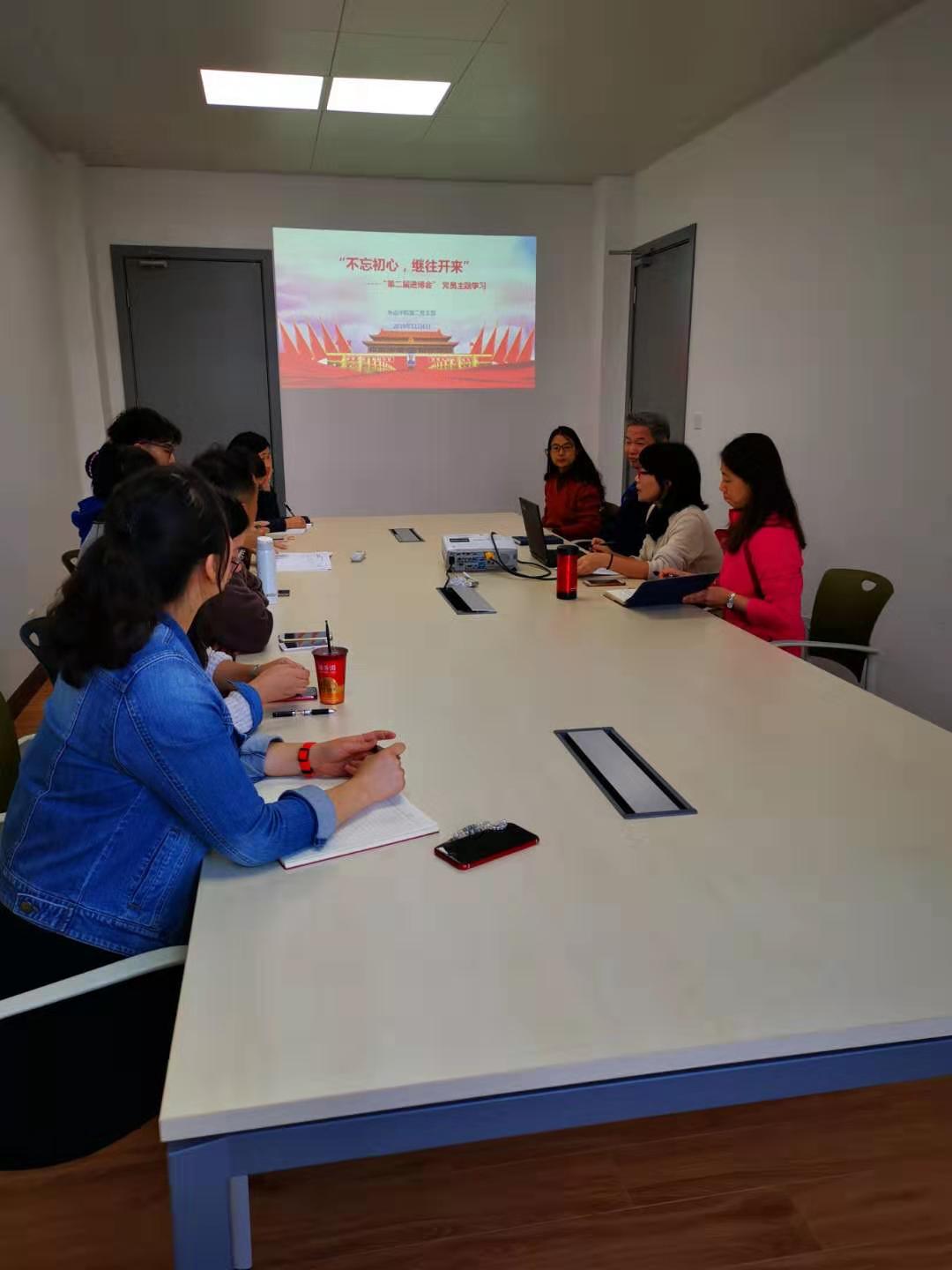 2019年11月6日,外语学院直属党支部第二党小组党员教师围绕主题教育要求,以“不忘初心 继往开来”为主题,学习讨论了习总书记在第二届进口博览会上的主旨演讲内容。通过集中学习研讨,全体党员教师认真学习了习总书记的讲话,党员同志们畅所欲言,纷纷发表自身的学习体会。习总书记说:“中国老百姓有一句话,叫作“世界那么大,我想去看看”。在这里我要说,中国市场这么大,欢迎大家都来看看。”表达了中国会坚持走改革开放道路,中国的发展有目共睹,作为一名中国人,每位党员教师也倍感自豪和骄傲。回顾近期开展的主题教育各项学习实践活动,同志们感觉到责任在肩,任重而道远,国家兴旺,匹夫有责。习总书记的演讲让党员教师们备受鼓舞,精神满满,纷纷表示要脚踏实地,积极进取,立足本职岗位,要在工作中体现出党员的先锋模范作用,切实为学校双一流建设工作贡献力量。(外语学院直属党支部)
