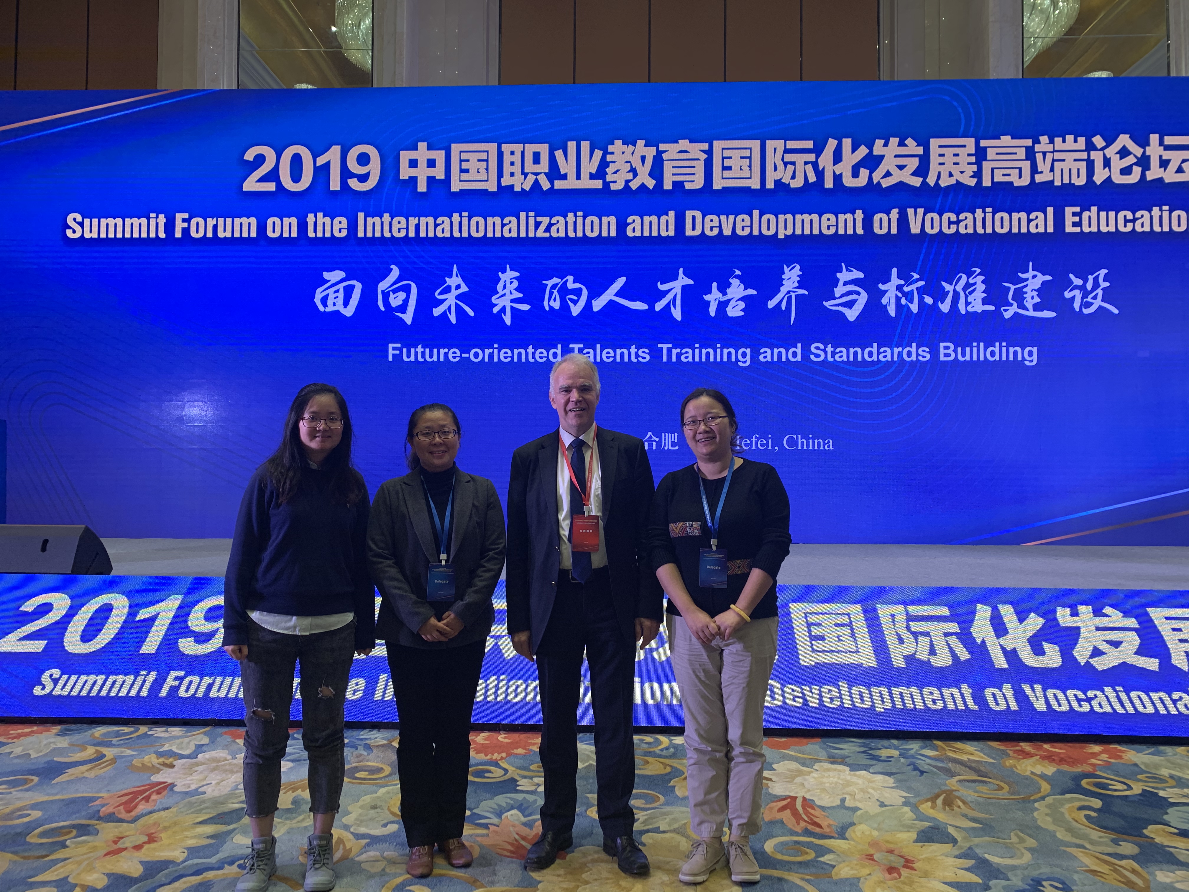 2019年11月9日,外语学院一行三人在肖潇院长的带领下参加了在合肥举办的主题为“面向未来的人才培养与标准建设”的“2019中国职业教育国际化发展高端论坛”。