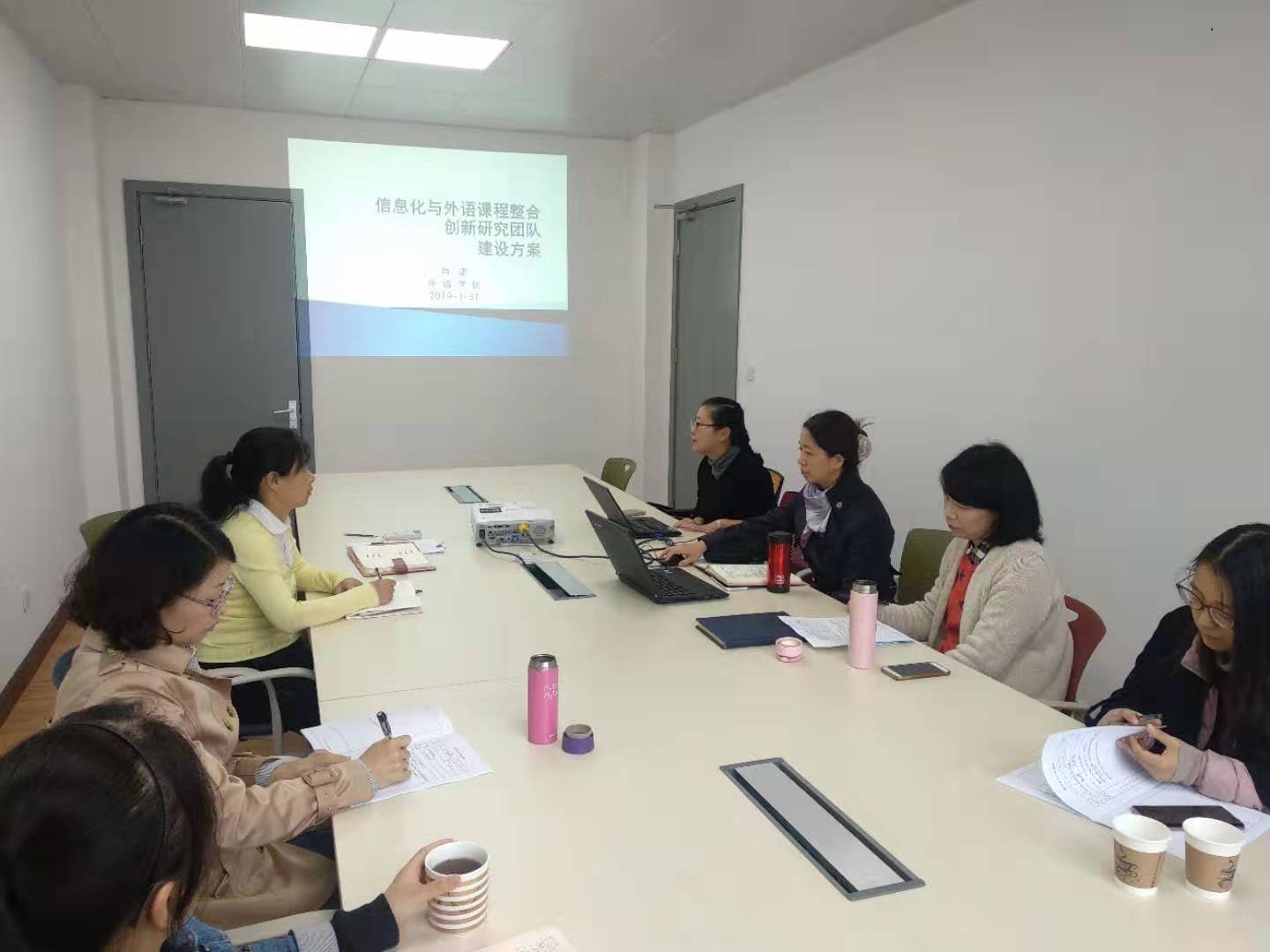 2019年11月12日星期二上午外语学院召开科研创新团队会议。会议上,外语学院肖潇院长就科研创新团队的创建背景、基础、目标、成果进行了介绍,并演示了部分老师所做的微课成果;就近期国家形势与职教动态:包括各类政策、文件、赛项、会议、调研、培训和实践,鼓励大家进行十三五规划教材申报、开发在线精品课程、打造金课;最后,希望团队成员能对所做工作进行提炼整理,突出亮点,为进一步的信息化资源建设和5G、人工智能的运用献计献策。(作者:邓玉华)