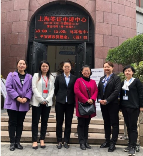 2019年11月22日,外语学院院长肖潇、英语系主任陈丽君一行人走访上海申慧因私出入境服务有限公司,与企业领导商讨双方合作事宜。