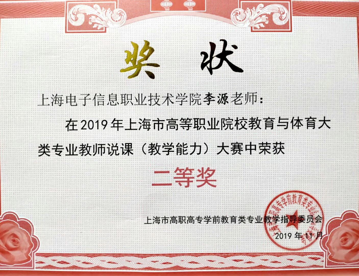 2019年11月15日,上海市高等职业院校教师说课大赛(教育与体育大类)复赛在行健学院举行,外语学院李源老师经过层层选拔、激烈比赛,荣获第二名二等奖,进入上海市高职教师说课大赛决赛。李源老师表示,此次教学比赛,是一次进行教学总结和改革创新的机遇,与其称其为比赛,不如称其为学习更加贴切。比赛准备过程,是教学理念的与时俱进,是对于课程内容的整合梳理,是对于教学经验的总结提炼,是对于教学实施的反思诊改,是对于信息化教学手段的探索尝试。备赛过程如同一场猎奇探秘之旅,充满了艰辛,肩负着责任,在学院领导老师的大力支持、帮助和指导下,时不时迸发出的灵感完善着教学设计方案,更反哺于课堂,服务于学生,为老师带来更多的职业幸福感。李源老师表示,能够获得上海市决赛的入场券代表学校参赛,是一份荣誉,更是一份责任,任务艰巨、使命光荣,为学院增光添彩一直是她备赛的最大动力来源。她表示,会以比赛为契机继续进行课程研究,完善教学设计方案,努力提高自己的教育教学能力,全身心投入到备赛过程中,不负众望,为我校教育事业的发展和人才培养质量的提升贡献绵薄之力。(作者:李源供稿单位:英语系)