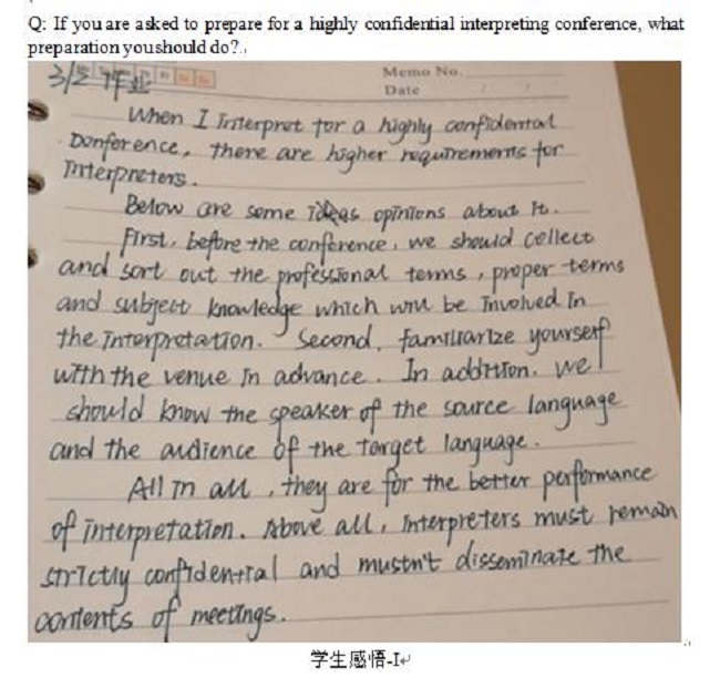 课程内容设置上,根据学生特点,从道德修养、职业操守、文化意识等方面的知识上进行拓展,将重点放在学生的思想、能力和素养的提升上。孙辉老师的《英语口译》课程以职场能力为基础制作教学视频,将口译员职业道德和礼仪、口译员跨文化意识、口译员保守机密文件操守等三大模块的实战案例进行细致讲解,让学生真正去感受英语口译中职业道德的重要性,同时了解相关法律法规。