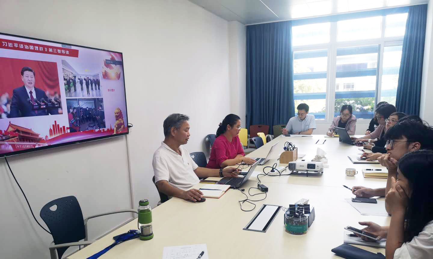 吴老师还讲到第三卷生动记录了党的十九大以来以习近平同志为核心的党中央,着眼中华民族伟大复兴战略全局和世界百年未有之大变局,不忘初心、牢记使命,统揽伟大斗争、伟大工程、伟大事业、伟大梦想,团结带领全党全军全国各族人民推动党和国家各项事业取得新的重大进展的伟大实践,集中展示了马克思主义中国化的最新成果,充分体现了我们党为推动构建人类命运共同体贡献的智慧方案,是全面系统反映习近平新时代中国特色社会主义思想的权威著作。认真学习《习近平谈治国理政》第三卷是用习近平新时代中国特色社会主义思想武装全党、教育人民的重大政治任务。外语学院直属党支部向全体党员发出学习号召,开展专题学习,要求每位党员同志结合“四史”学习,结合实际工作,认真学习第三卷内容,主动学习思考,主动承担责任,认真钻研业务,积极带动周边,让鲜红的党旗在教育教学的工作一线高高飘扬。