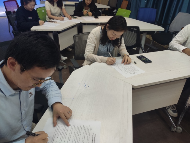 在学院党政领导见证下,教师们在承诺书上郑重签上自己名字,以自己的实际行动坚守底线,不逾红线,落实好、执行好《准则》的庄严承诺,争做做党和人民满意的好老师。(外语学院直属党支部)
