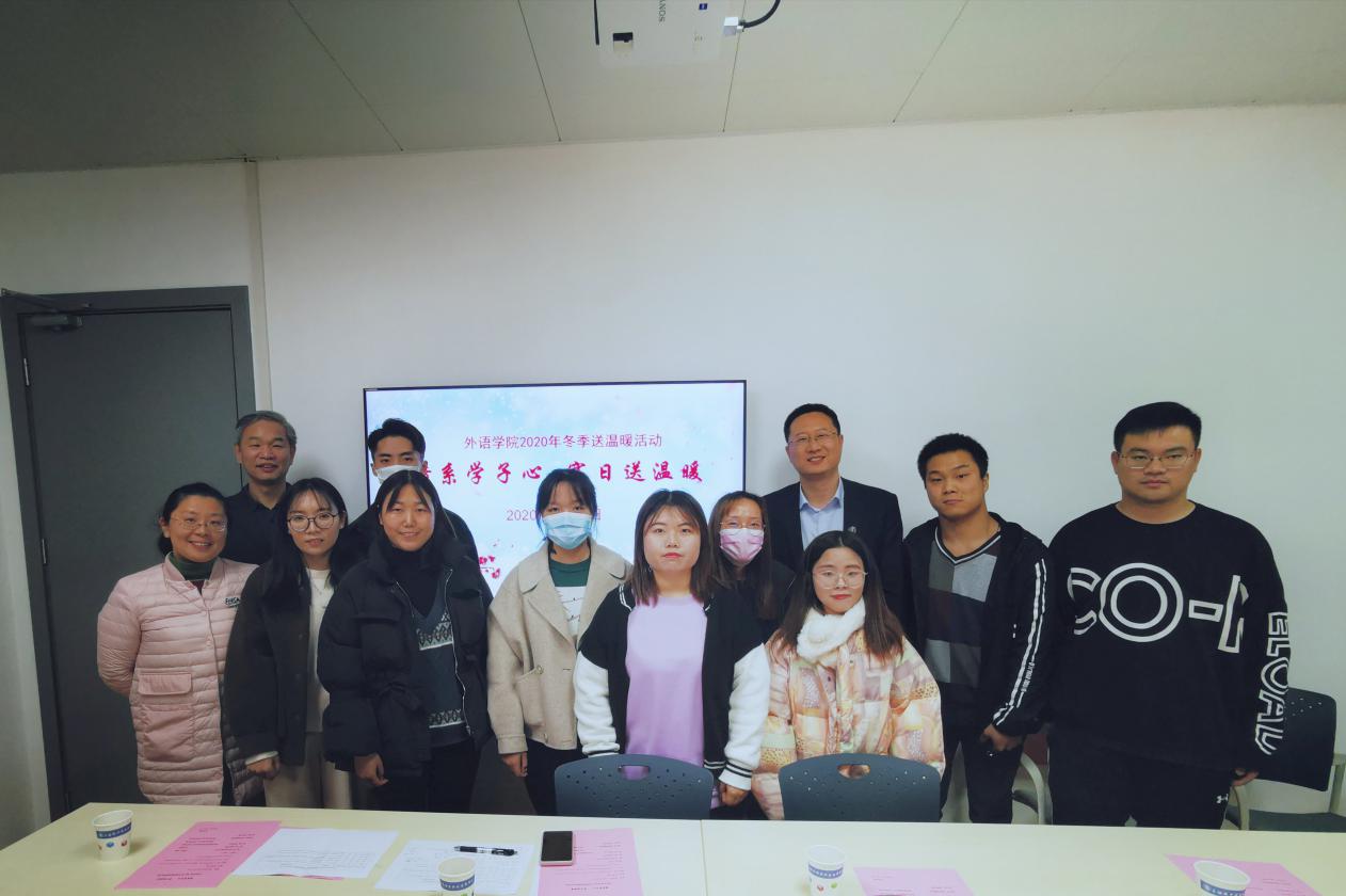 2020年寒冬已经来临,为了帮助家庭经济困难学生能够温暖过冬,体会到学校大家庭的温暖,我院于12月8日12:00在A105举行了以“情系学子心 寒日送温暖”为主题的冬季送温暖活动。学校党委副书记、副校长张涛,学生处邬晓斌老师,外语学院党政领导和全体辅导员、困难学生代表参会,座谈会由外语学院直属党支部吴亚人书记主持。