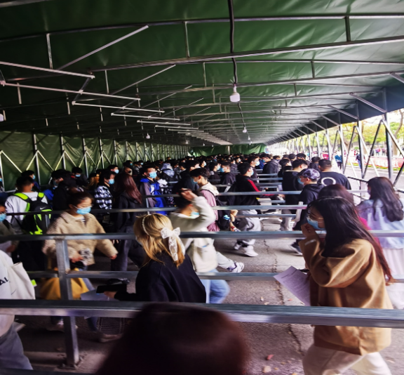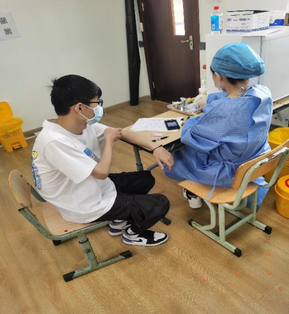 当日,外院学生严格按照接种流程进行排队等候,并积极配合工作人员出示随申码、健康码、预约码和知情同意书等相关证明,在接种室外配合检查,全程整齐有序。