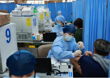 在上海奉贤接种现场,近百名医护人员们开足马力,连轴工作不停歇,只为满足大家的接种需求,筑牢社会公共卫生安全网。
