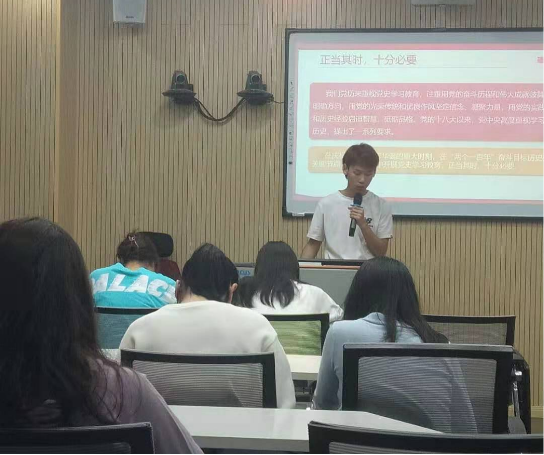 “我们要认真回顾走过的路,不能忘记来时的路,继续走好前行的路,坚定理想信念,牢记初心使命。”团总支书记、辅导员赵婷老师和大家一起学习了习近平总书记《论中国共产党历史》的部分章节,从各个方面强调学好党史的重要性,在讲解过程中与同学们进行互动交流。书内汇编了习近平总书记关于中国共产党历史发表的一系列重要论述,对青年学生的党史学习大有裨益。