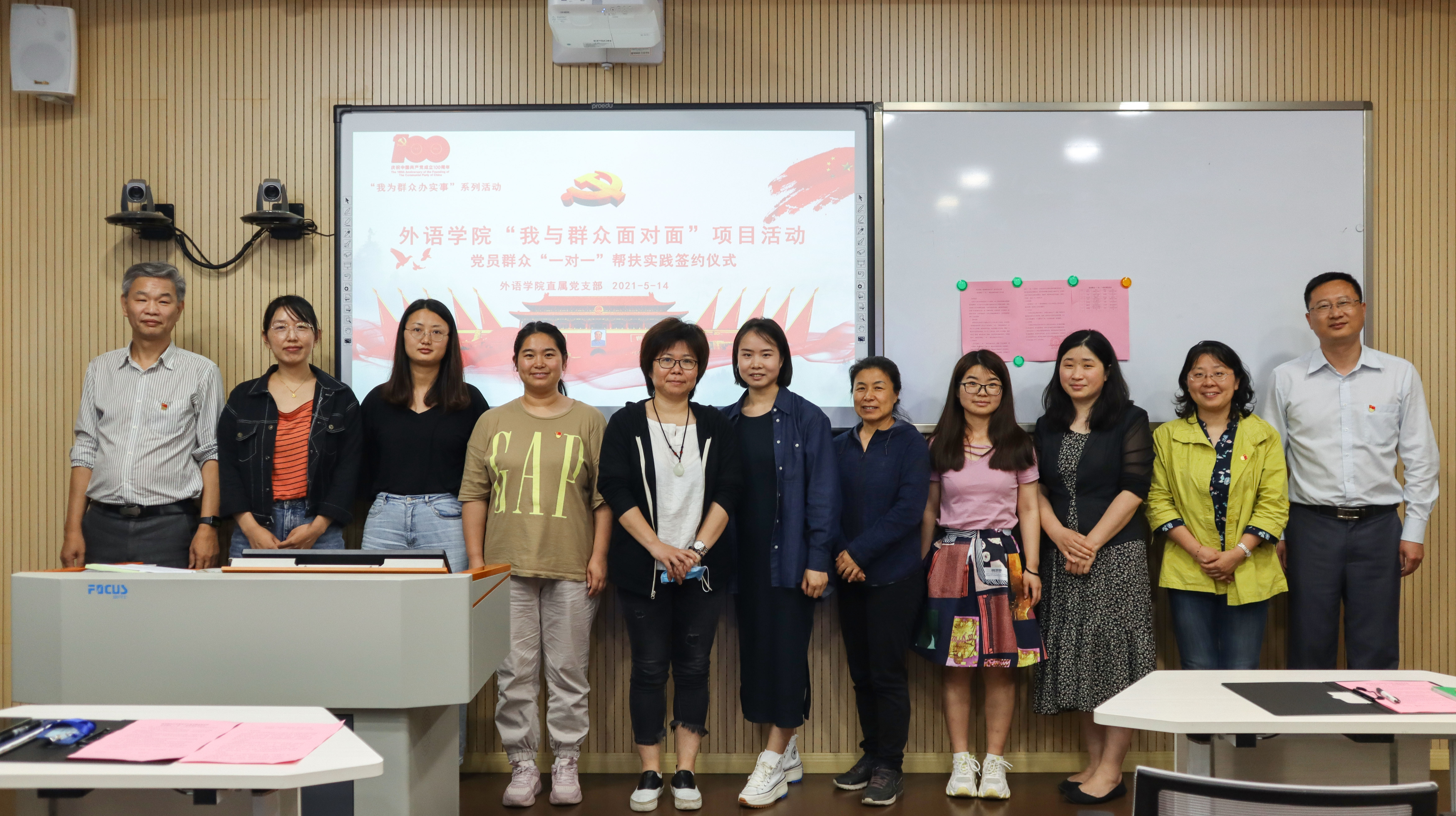 5月14日,外语学院直属党支部我为群众办实事——党员群众“一对一”帮扶实践活动启动。校党委副书记张涛莅临指导,并与学院党员群众代表们在A110教室一起见证了党员群众结对签约。