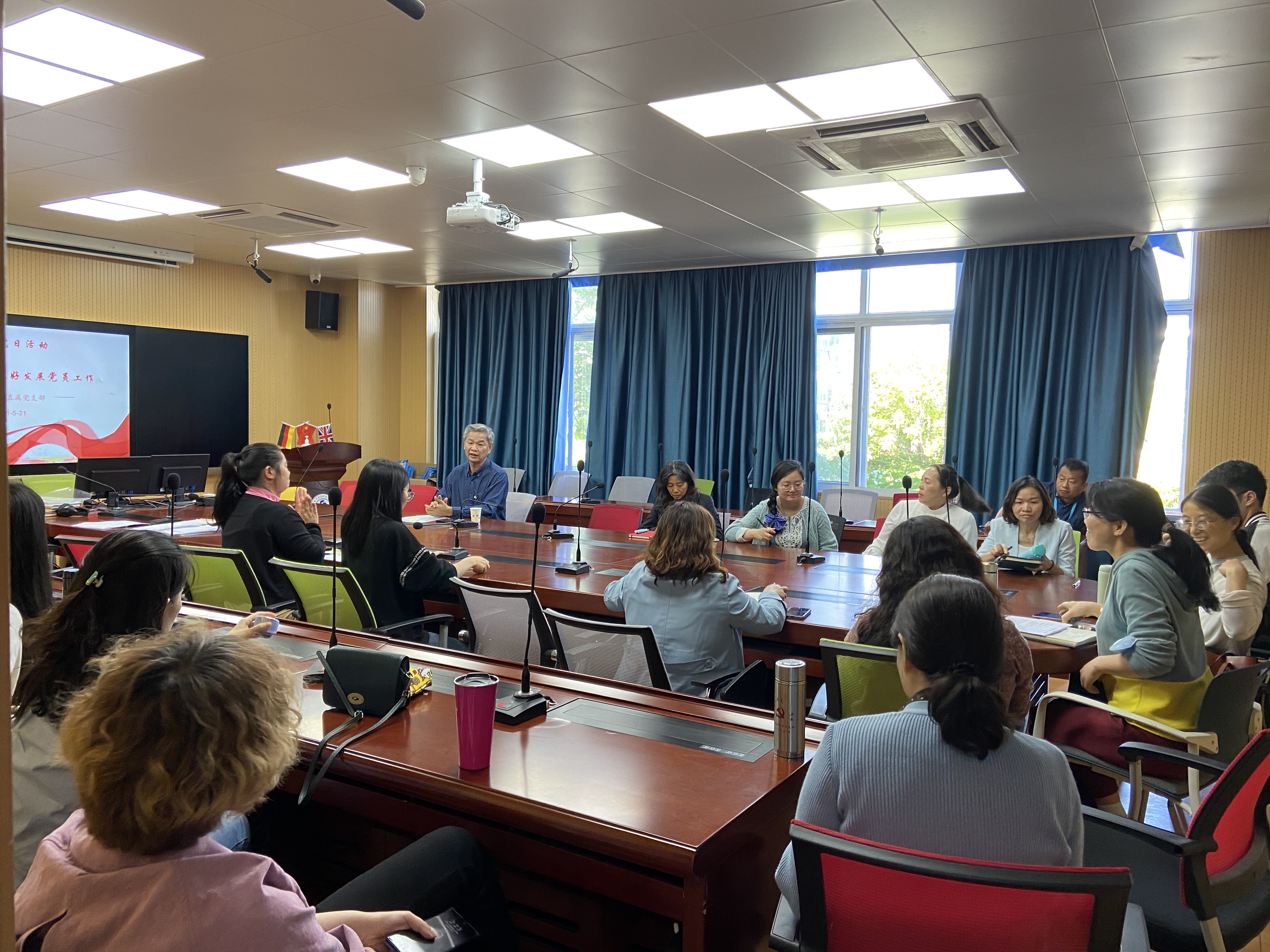 5月21日,外语学院直属党支部在A111举行了“学党章 促党建”的主题党日活动,党支部书记吴亚人主持会议,学院全体党员参与了本次活动。