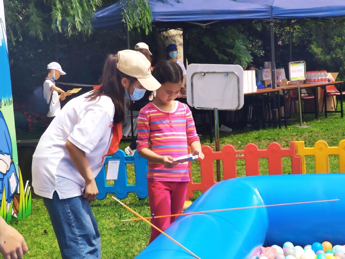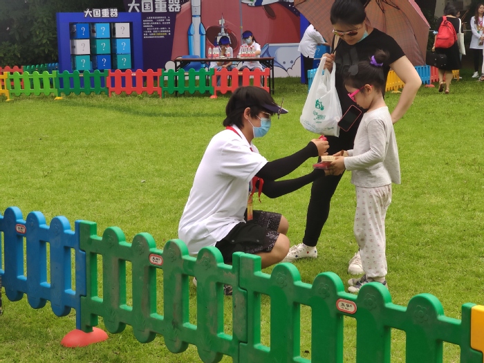 活动期间,志愿者们全心投入,从点滴细节中体现了对小朋友们的关爱,细心指导,耐心帮助小朋友们完成通关任务。活动中我院学生志愿者充分展现了当代大学生精神风貌。虽然户外骄阳似火,但学生们的耐心与细致博得了在场家长与中福会负责人的一致认可。