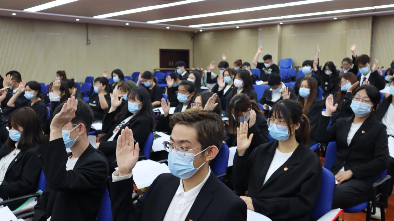 2021年6月14日,外语学院第三次团员代表大会暨第三次学生代表大会在I403报告厅顺利召开,外语学院团总支书记赵婷老师和各学院团学干部代表出席了本次大会。