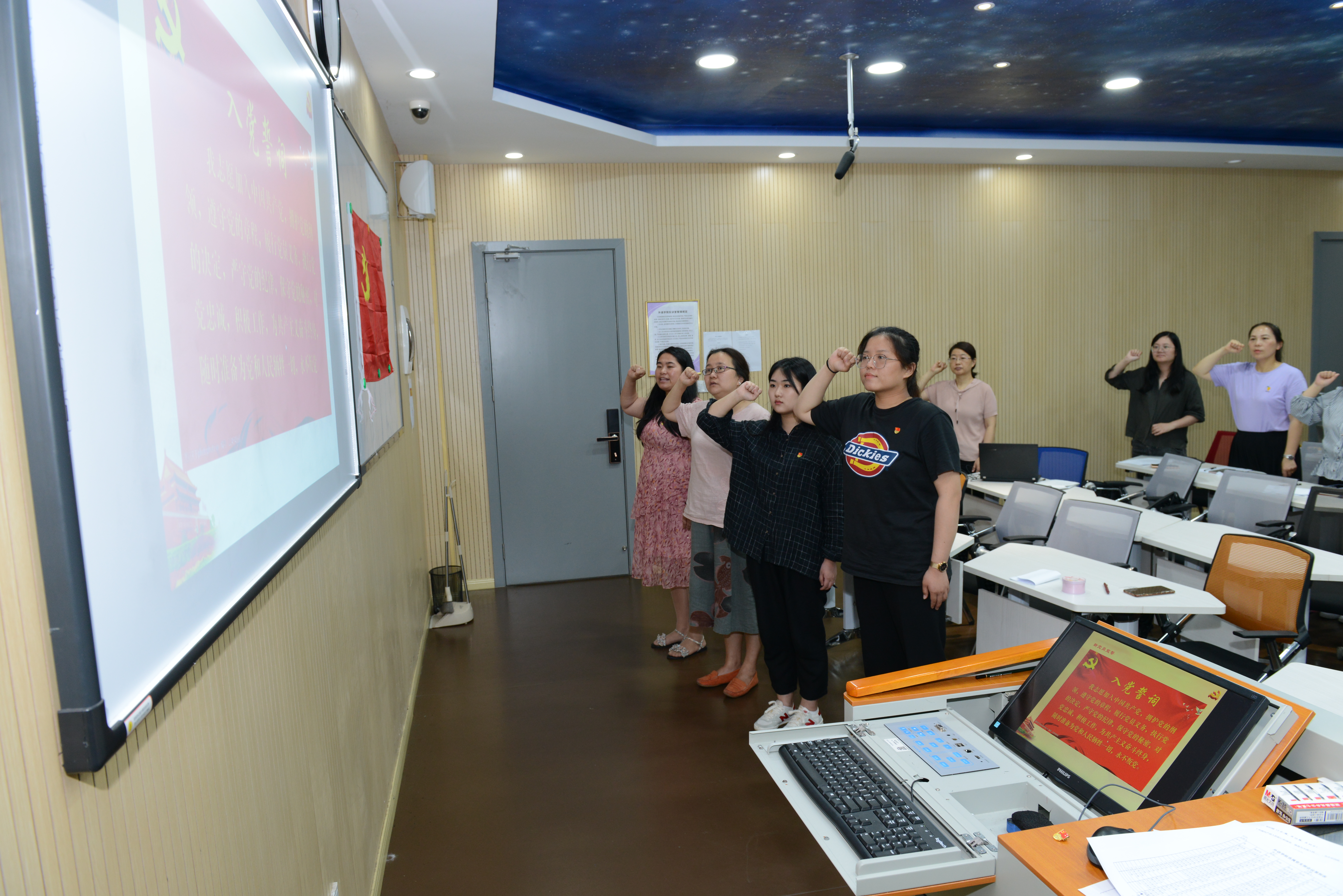 入党誓词,是党员对党组织的“承诺书”。在庆祝中国共产党成立100周年之际,党支部组织新党员进行了宣誓仪式。全体新党员在组织员向华老师带领下,面对党旗庄严宣誓,吐露了为共产主义奋斗终身的心声。在庄重的会议气氛中,在座的全体党员也举起右手再一次向党庄严宣誓,承诺始终听党话、跟党走,初心如磐、使命在肩,为党育人,为国育才,献礼建党百年。(供稿 外语学院直属党支部)