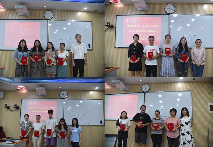 2021年9月10日,外语学院在A110召开2021年秋季开学全体教职工会议暨2020学年教师节表彰大会,对新冠疫情以来教学、科研、管理等各方面工作进行了总结,并表彰了一批在各条战线上严谨治学、甘于奉献的先进典型。本次会议由外语学院支委陈婷华主持,外语学院全体教职员工参加了会议,学院党政领导分别作了发言。