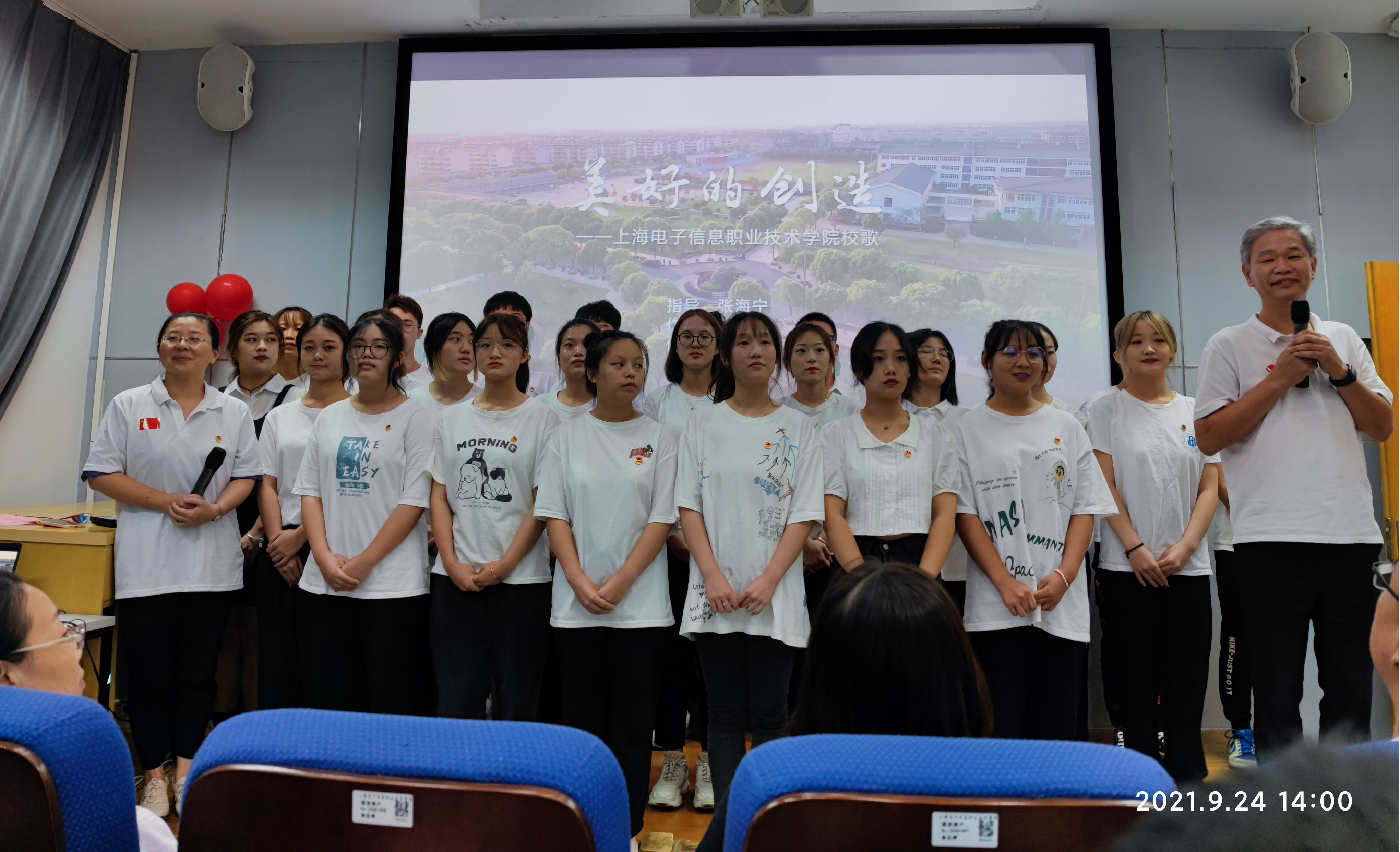 活动最后党支部书记吴亚人、副书记肖潇老师带领全体参会人员一起合唱校歌《美好的创造》,歌唱美丽的校园,致敬伟大的共产党,致敬伟大的祖国。(供稿 外语学院直属党支部)