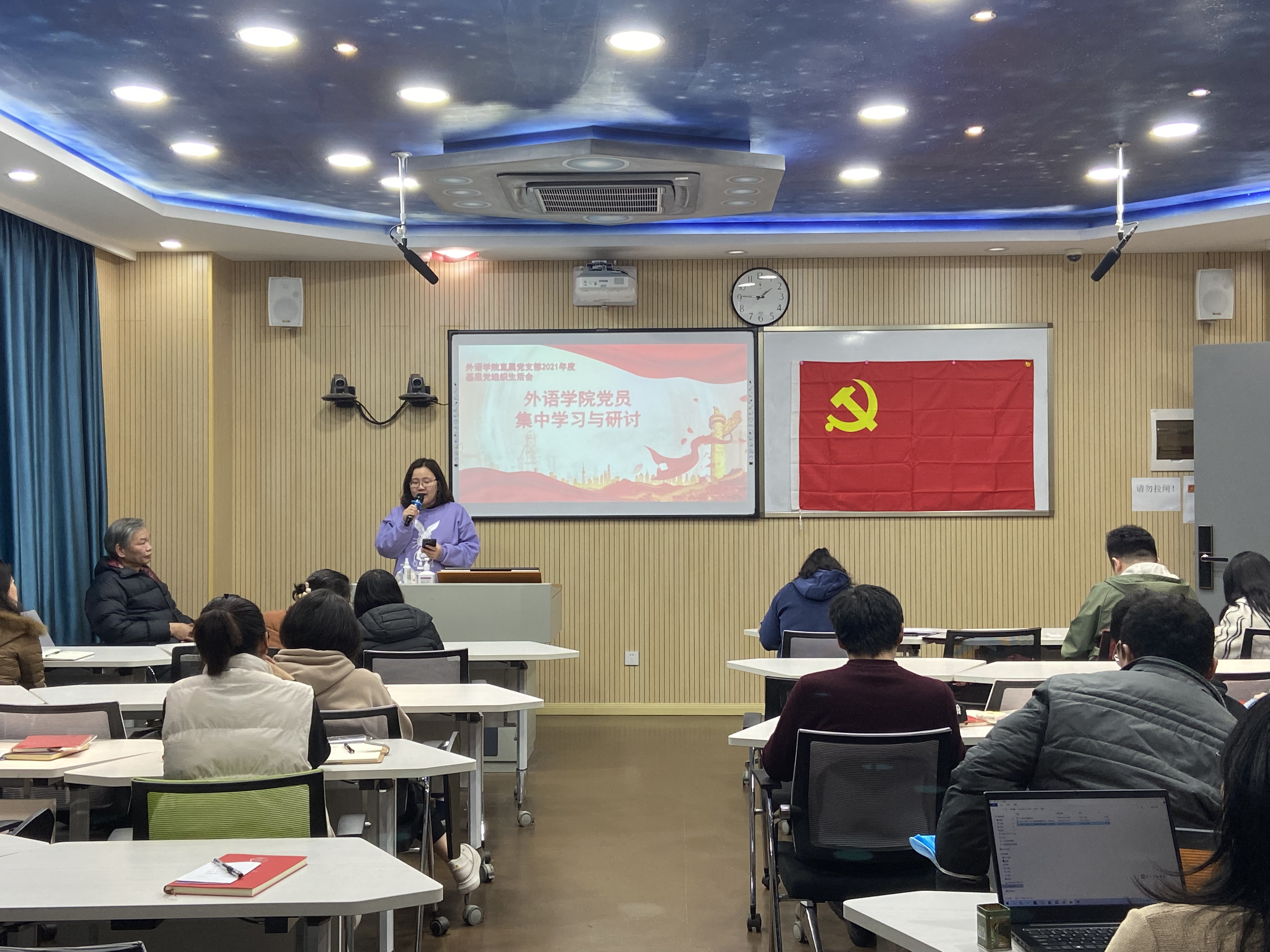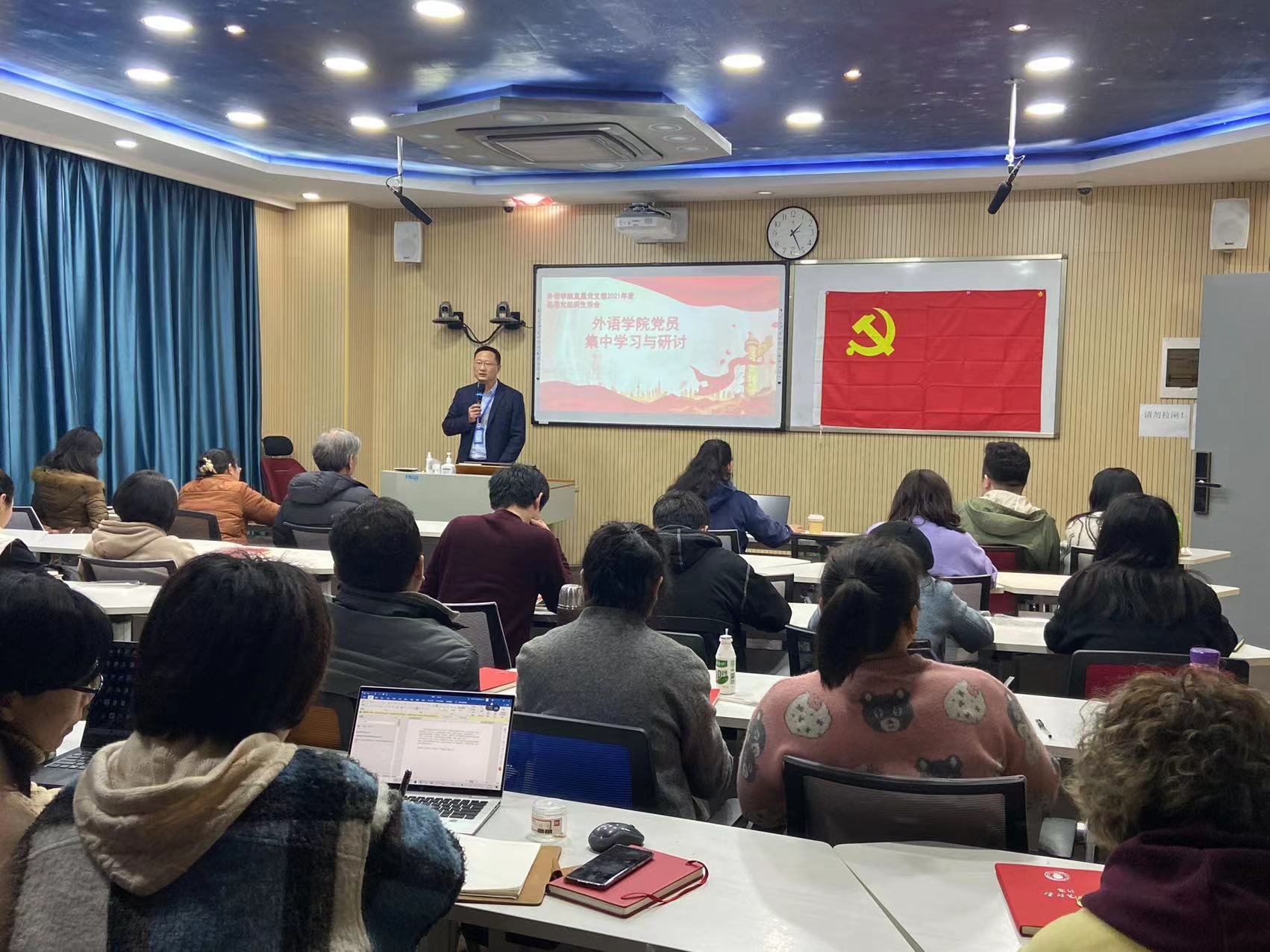 为开好2021年度基层党组织生活会,完成民主评议党员工作,凝心聚力,打牢思想之基,3月4日,外语学院直属党支部全体党员齐聚A110会议室,认真开展3月主题党日活动暨2021年度专题组织生活会集中学习交流。校党委张涛副书记参加了此次学习活动。