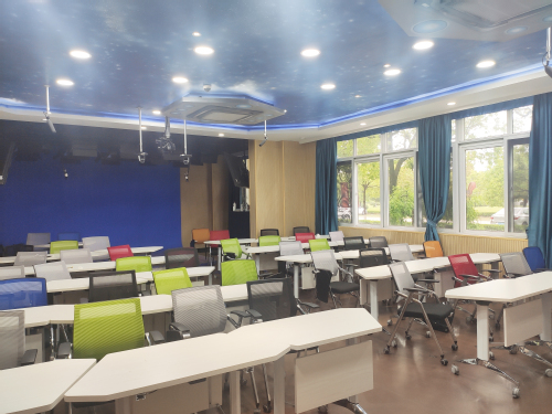 使用面积150平方米,以三维虚拟情景还原知识应用的真实环境,创造结构完整、内容具体的三维立体空间,给学生建造各种语言训练及运用的环境和平台,打破时间、空间、地域的局限,在教室中即可进入各种环境,进行情景对话、文化体验和实战模拟演练训练。工位数:35