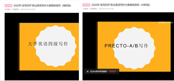 随着职业院校办学水平的不断提高,对社会培训的需求也日益增加。“课赛结合”是高职教育实现人才培养和专业建设的重要教学模式,达到以赛促教、以赛促学的目的。本次“改写匠”写作大赛采用了“课..赛”多元一体化模式,发挥外语教师的专业特长,立足课堂、拓展生源、打破校际壁垒,让更多的学习者通过在线培训受益。