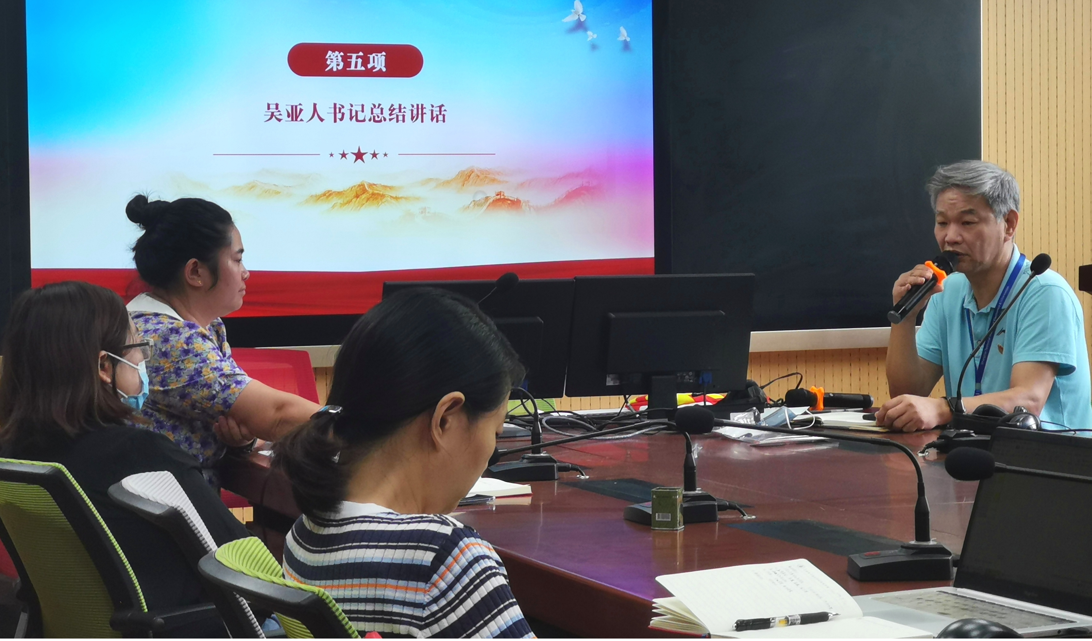 党支部书记吴亚人老师总结汇报了上半年的支部党建工作和学院各项中心工作,并对本学期主要工作进行了规划安排。三尺讲台,万里江山,吴书记要求全体党员牢记为党育人、为国育才的初心使命,攻坚克难,奋发作为,开拓创新,铸魂育人,致力培养堪当民族复兴重任的时代新人。(外语学院直属党支部供稿)
