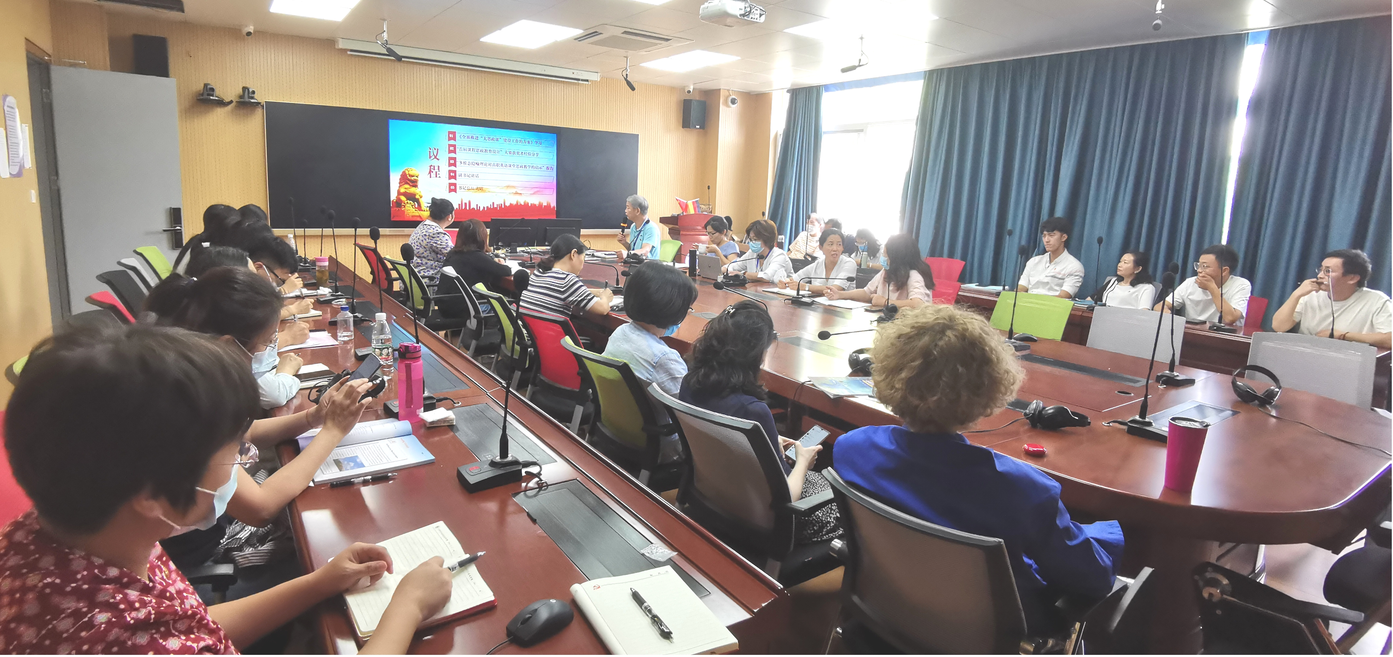 组织员向华老师对《工作方案》的主要精神和重点内容进行了细致地领学;学校“首届课程思政教学设计展示活动”的三位获奖老师进行了经验分享和心得交流;学院教学副院长邓玉华老师为全体党员作了《多模态隐喻理论对高职英语课堂思政教学的启示》报告。党员老师纷纷表示此次活动是一次思想丰富、内容生动的理论学习会,也是一堂融合外语三教改革创新的业务培训课,将为持续推进学校外语课程思政高质量发展奠定坚实基础。