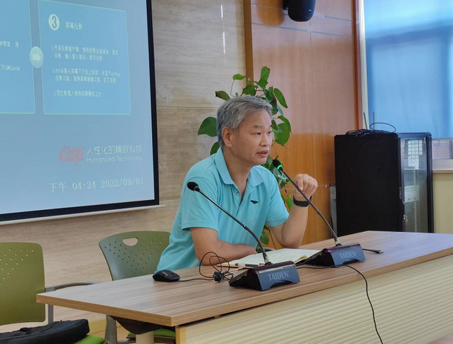 当天下午,学院召开2022学年秋季全体教职工大会。会议由肖潇院长主持,党支部书记吴亚人作了发言。会议就本学年核心业务包括职业本科申建、年度目标任务与考核、专业动态调整、教师分类评价等几大重点工作的进展进行介绍。吴书记就疫情期间党建工作、教职工学习、毕业生就业率、招生等情况做了介绍。