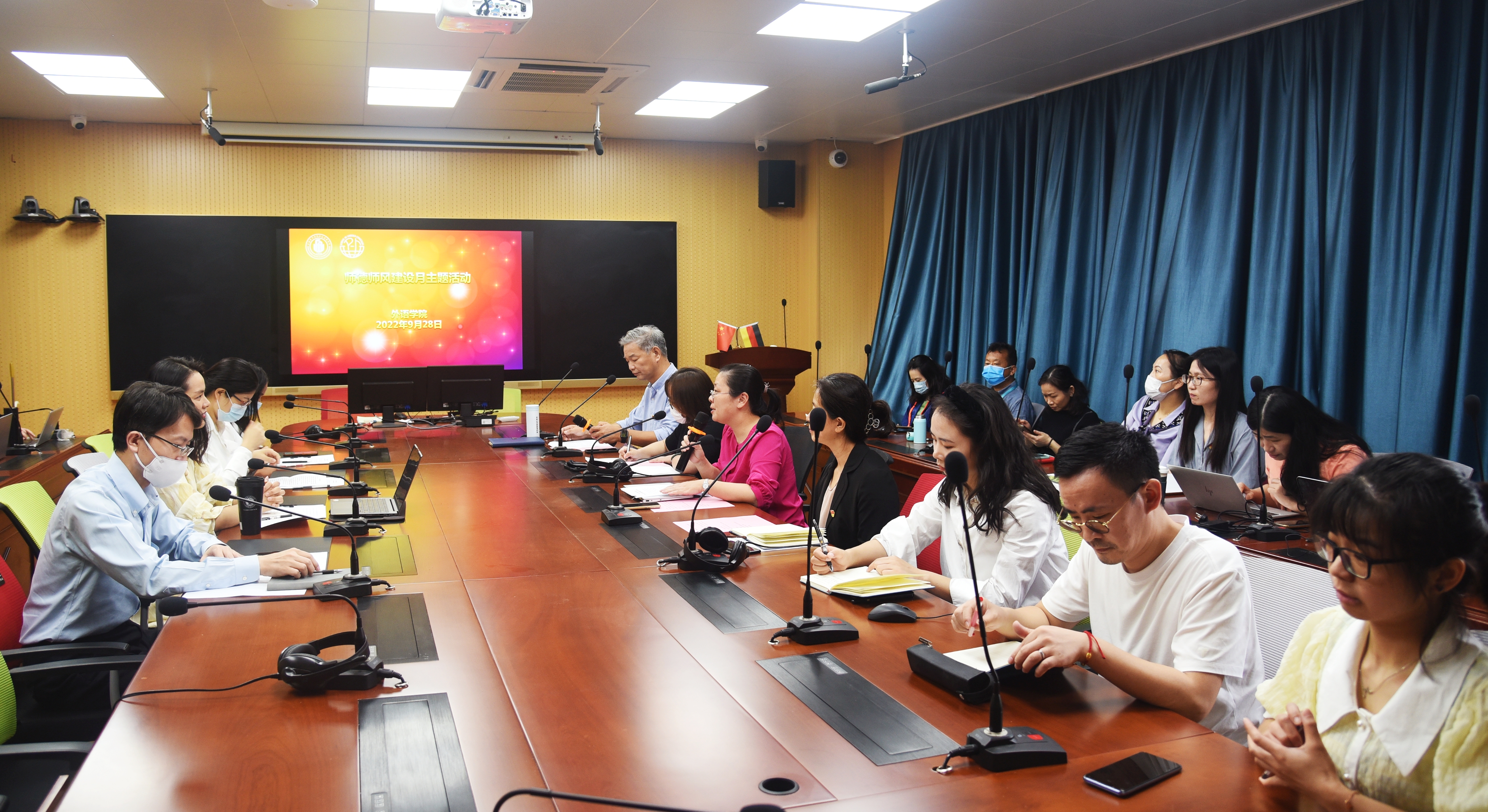 9月28日上午,外语学院在A111会议室开展师德师风建设月专题活动——师德师风大讨论,外院全体教职工通过线上线下的形式参会,校党委组织部吴淑芳副部长受邀出席。