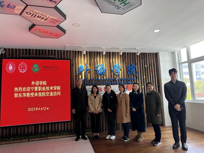 2023年4月12日上午,宁夏职业技术学院职业素养教学部郭东萍教授来我院交流访问。外语学院院长肖潇、副院长邓玉华、英语系主任任莉枫等教师代表参加了会议交流。