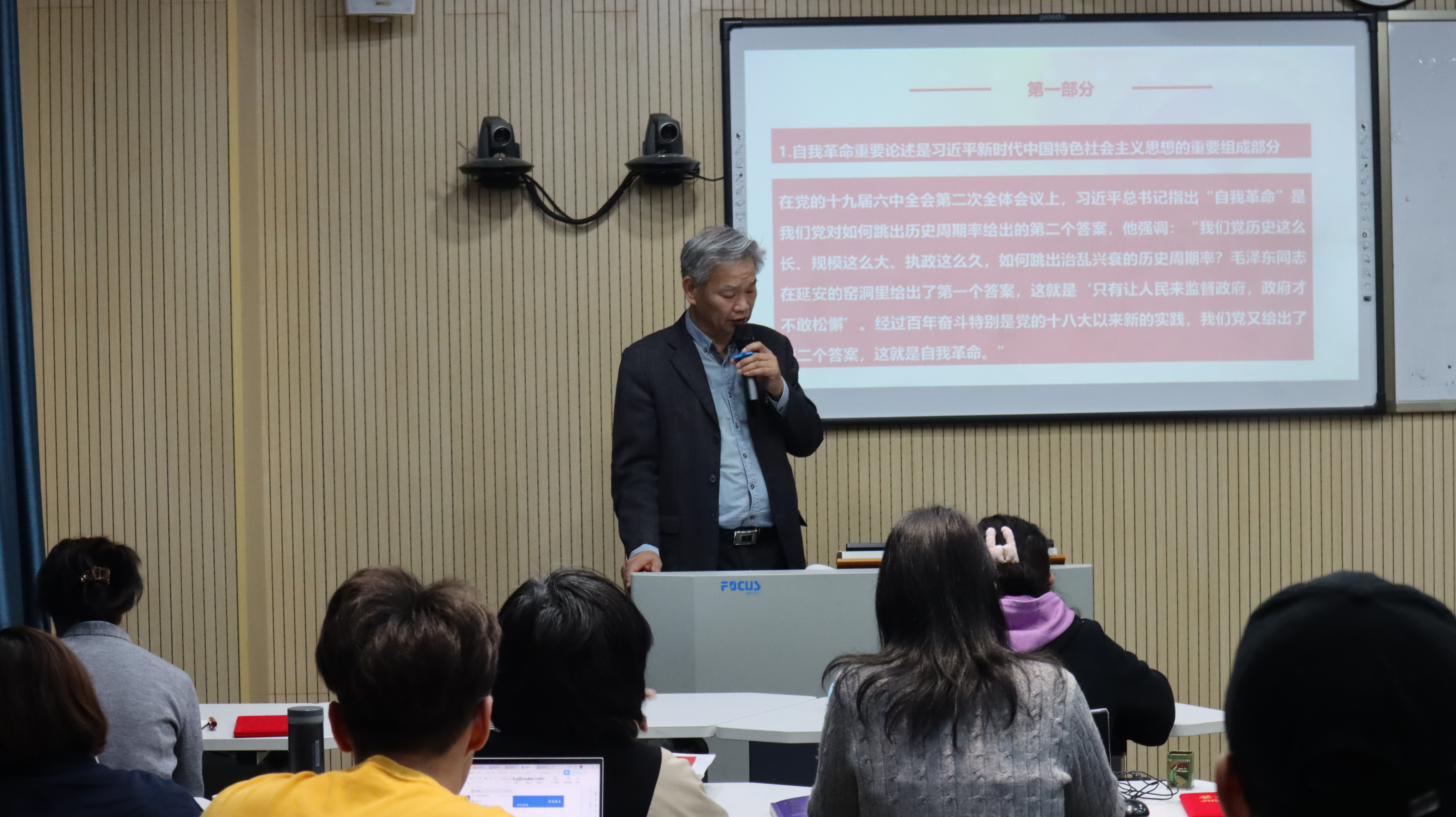 427日下午,外语学院直属党支部举行“学思想强党性,重实践建新功”4月主题党日活动,深入学习贯彻习近平新时代中国特色社会主义思想。四十余名党员和入党积极分子齐聚A110,学思想强党性,明方向担使命。