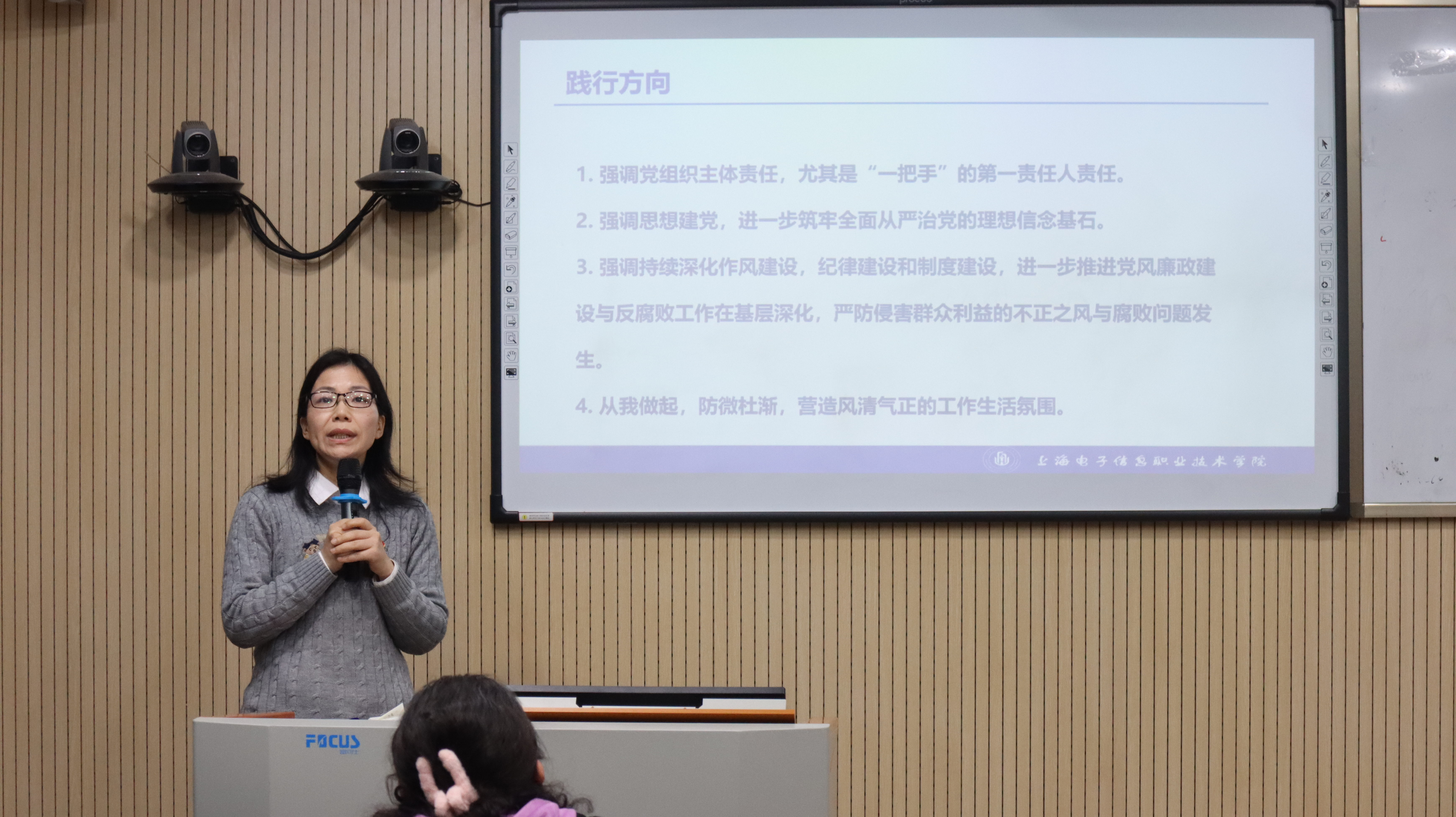 接着,纪检委员陈婷华老师组织党风廉政专题学习,领学《全面从严治党向基层延伸》重要内容,传达学校全面从严治党工作会议要求,2022年监督执纪情况和2023年监督执纪重点工作,明确外语学院党风廉政建设践行方向。