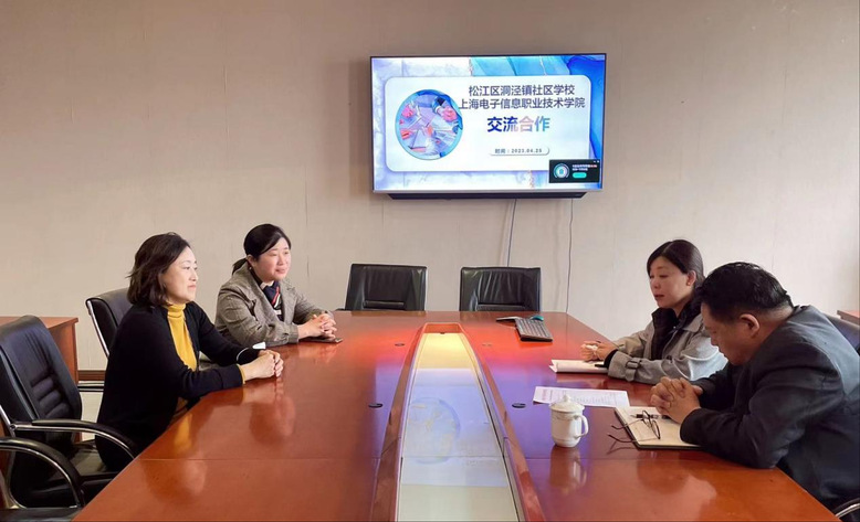 徐晓莉主任介绍了学校职业本科建设和学院专业建设等情况,社区学校沈强妹校长也详细介绍了洞泾镇社区学校近两年为社区服务所作的贡献、所开发的特色项目,以及所开设的老年大学课程、非遗项目宣传等。双方就校校合作、教材编写、社区老年服务和乡村振兴项目等进行了深入交流,达成了合作共建意向,并初步拟定了教材编写和社区老年服务等合作事宜。