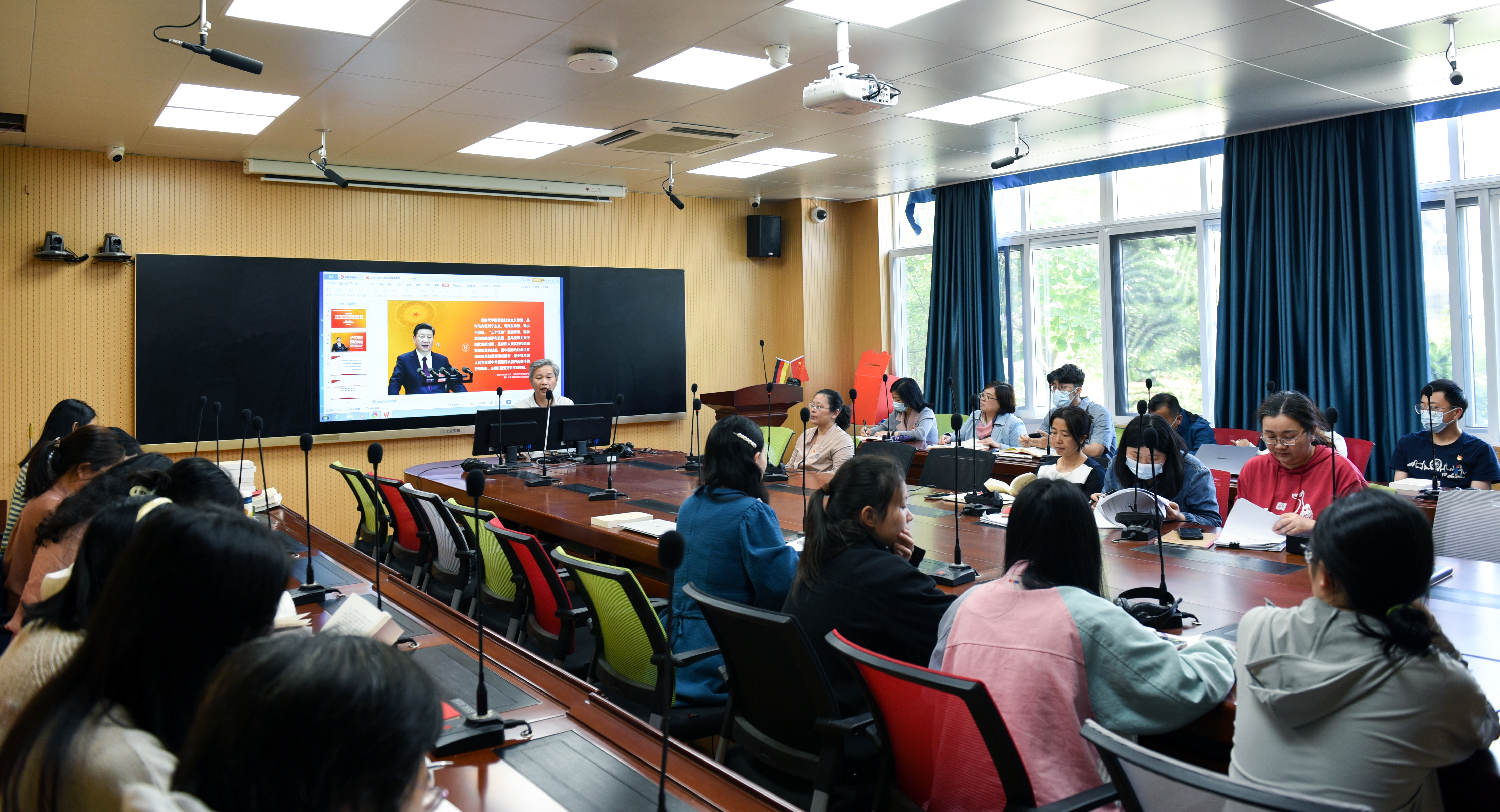 为全面深入学习贯彻习近平新时代中国特色社会主义思想,强化理论学习,提升主题教育质量。5月25日,外语学院直属党支部开展书记讲党课活动,支部书记吴亚人向学院全体党员和入党积极分子讲授“《习近平新时代中国特色社会主义思想专题摘编》选读”专题党课。活动由直属党支部副书记肖潇主持,学校党委主题教育联络组胡月玲老师列席。