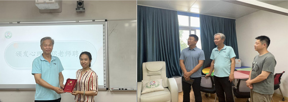 首先,陈丹老师汇报了外语学院心理育人工作站“馨语屋”的建设背景、工作开展情况以及未来努力方向等。学工部部长栾文飞老师从工作目标和工作架构对外语学院心理育人工作站提出要求,希望学院能将工作落到实处,创办有学院特色的心理育人工作站,并表示在政策上会对各方面工作给予大力的支持。随后,栾部长和外语学院直属党支部书记吴亚人老师共同为外语学院心理育人工作站揭牌。吴书记代表外语学院心理育人工作站向中德工程学院强佳璐老师颁发了兼职心理老师聘书。同时在讲话中表示学院要积极落实学校心理健康教育工作的要求,加强学院心理工作站制度建设和队伍建设,将心理工作站的工作质量提升新高度,为学生提供全面服务。揭牌仪式结束后老师们实地参观了心理工作站现场。