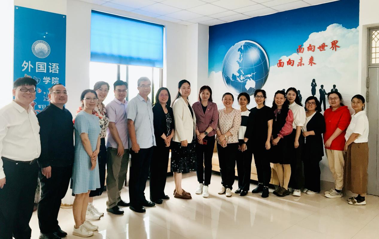 交流过程中,肖潇院长介绍了我校外语学院的发展历程、组织架构、专业设置、质量工程、科研成效等方面的情况,以及学院“十四五”特色发展的定位。通过此次调研,明确“三要点”:一是职业本科建设背景下外语师资的转型发展与科研要求;二是工科院校外语专业和公共英语的特色发展;三是产教融合、横向项目、社会服务的经验做法等。
