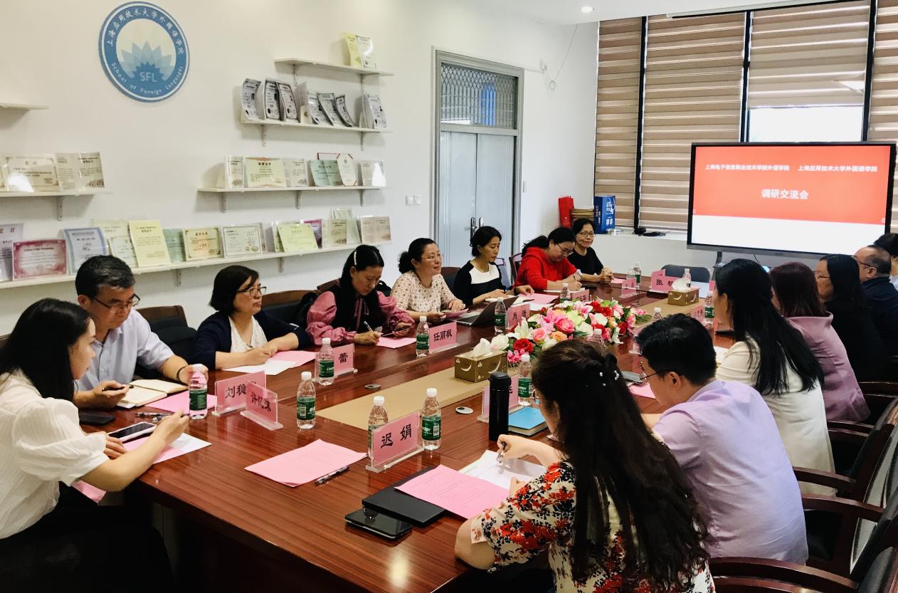 为进一步认真开展学习贯彻习近平新时代中国特色社会主义思想主题教育,深入开展调查研究破解难题,学习和借鉴兄弟高校教师教育高质量发展方面的宝贵经验和成功做法,找准工科院校外语学科与专业转型发展路径,6月7日,外语学院院长肖潇、副院长邓玉华带领各系主任及教师代表赴上海应用技术大学外国语学院调研学习。