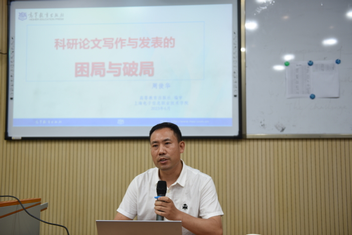 为进一步提升科研意识和提高科研论文写作水平,2023年6月29日,外语学院邀请高等教育出版编审周俊华教授为全体员工带来了一场主题为《科研论文写作与发表的困局与破局》科研讲座。