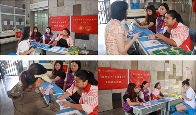 当天上午,宣传队与浦兰社区志愿者在社区内设置了宣传摊位,向过往的居民发放宣传手册,宣传推广国家资助政策。同时,辅导员赵婷老师带领宣传员罕克孜·图尔荪同学和韩佳运同学积极向居民讲解政策细节,解答居民疑问,并鼓励符合条件的居民积极提交资助申请。