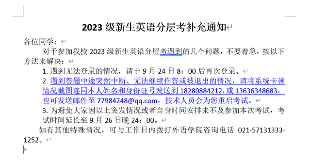 上海电子信息职业技术学院2023级新生入学英语水平测试须知
