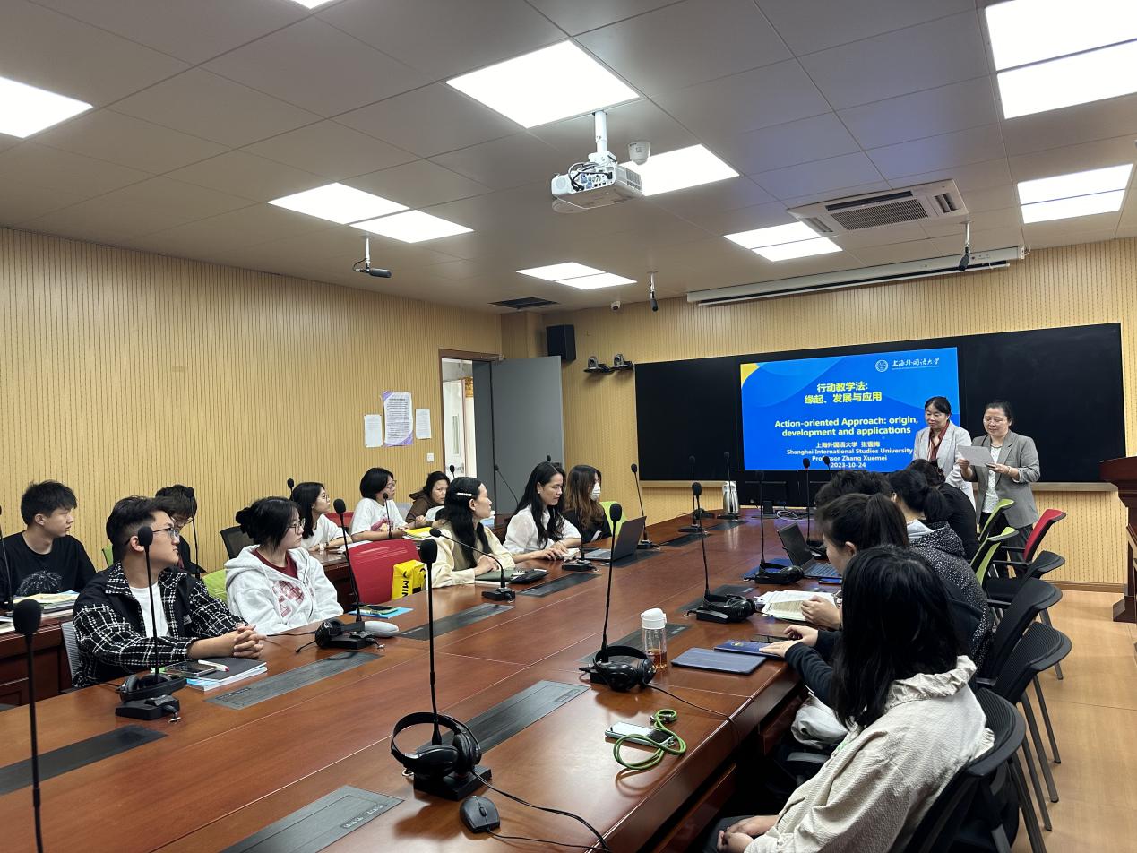 2023年10月25日,上海外国语大学教授,孔子学院编辑部主任、博士生导师张雪梅教授应邀为外语学院师生带来了主题为《行为教学法-缘起、发展与应用》的讲座。张教授从2020年新版的CEFR (欧框)出发,和师生们一起探讨语言行动观,提出行动教学法,为外语教与学和评估提供新的可能。