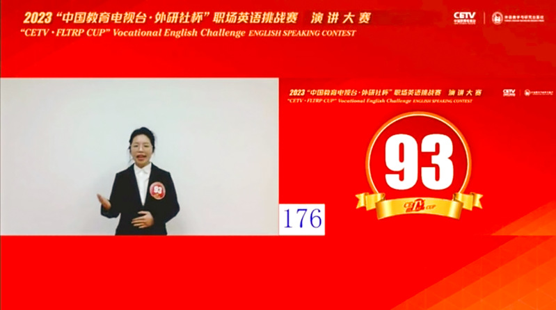 12月15日,2023年“中国教育电视台·外研社杯”职场英语挑战赛演讲大赛全国决赛圆满落幕。我院应用英语专业学生黄子祎在大赛中表现优异,荣获全国三等奖。