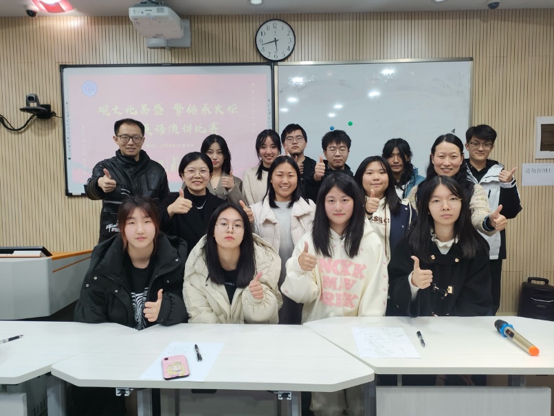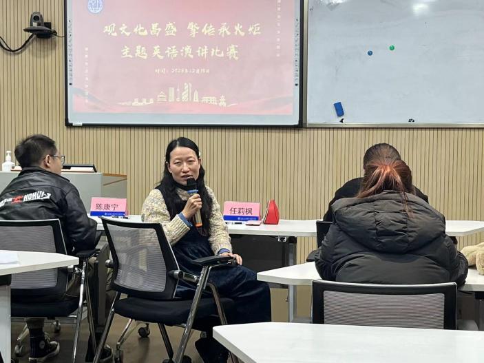 为推动校园文化繁荣,深入挖掘中华优秀传统文化,外语学院学生会于2023年12月18日成功举办“观文化昌盛,擎传承火炬”主题英语演讲比赛,比赛由英语专业系主任任莉枫、英语教师王凤云和陈康宁担任评委。