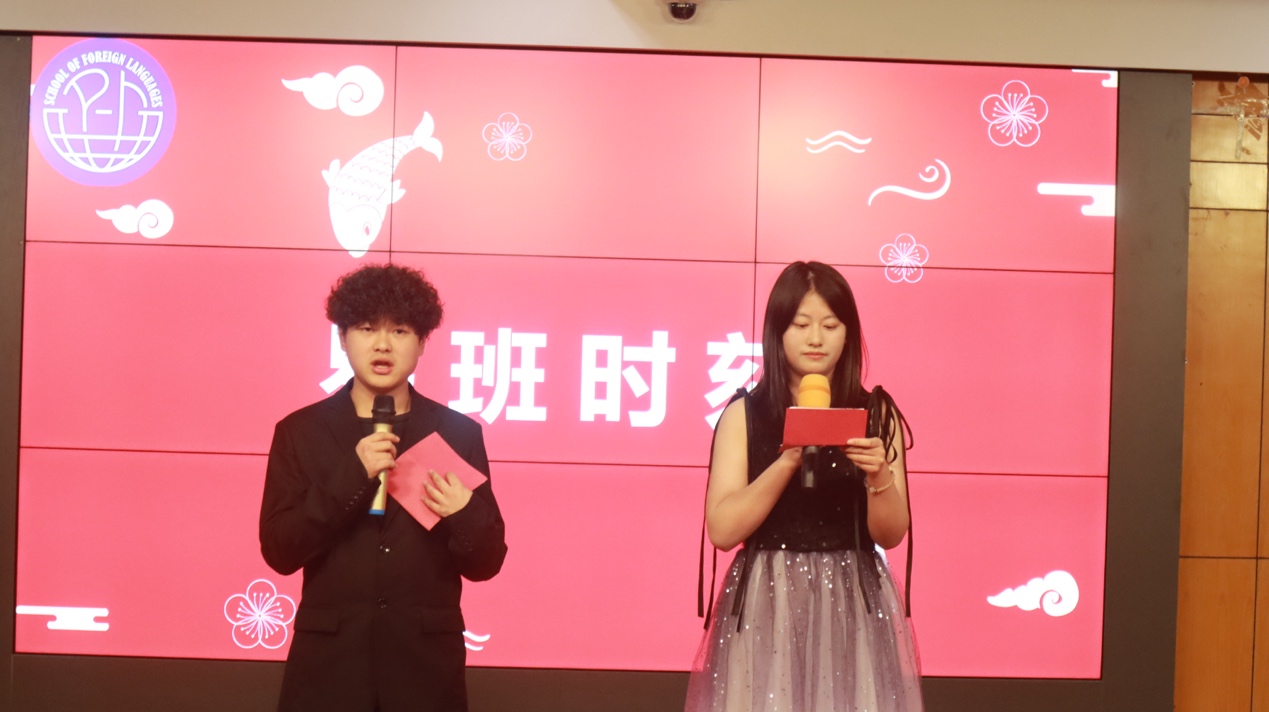 晚会由鲁钟秋和于静两名同学主持。