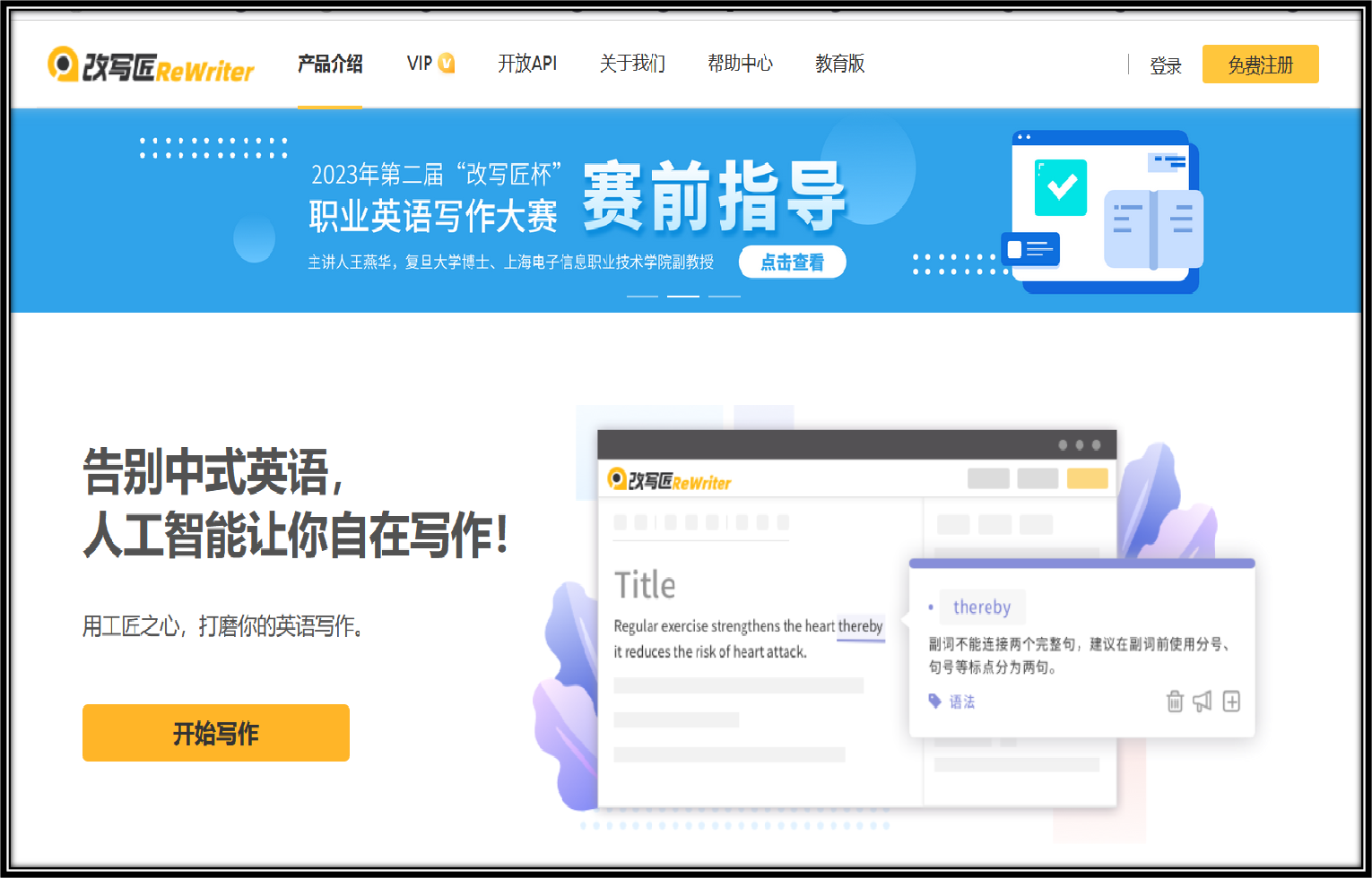 近日,由我院和上海一者信息科技有限公司联合主办的 2023 年第二届“改写匠杯”职业英语写作大赛暨写作培训落下圆满帷幕。旨在为学生提供一个展示自我、提高写作能力的机会,并促进校际交流与合作。