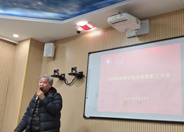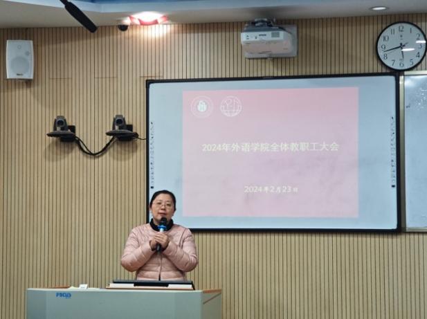 2月23日,外语学院召开2024年全体教职工大会。会议对新一年工作进行了部署,并重点传达《2024年上海市教育委员会工作要点》精神。学院党政领导和全体教职工参加了此次会议。